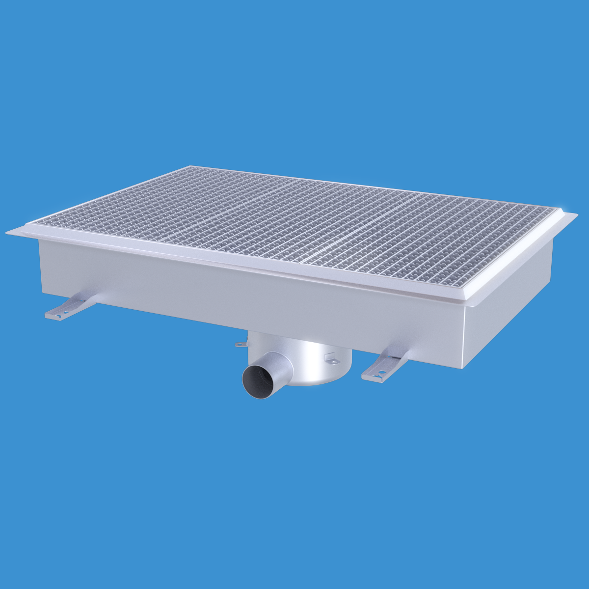 FURO 113 för bl.a. storkök och industri med lättare belastningar. Av syrafast rostfritt stål med sidoutlopp Ø75 mm. 200 mm djup fyrkantöverdel med galler L15 dim. 900x600 mm. För massagolv. Komplettera ev. med silkorg 7120796.