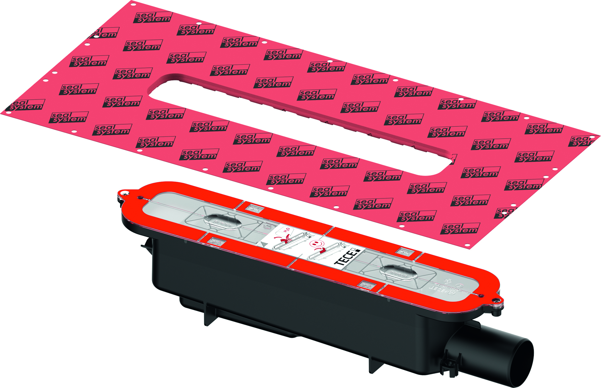 TECEdrainprofile Avloppsmodul "standard" med sidoutlopp DN 50. Avsedd för TECEdrainprofile Golvränna. Försedd med fabriksmonterad och klickbar folie.