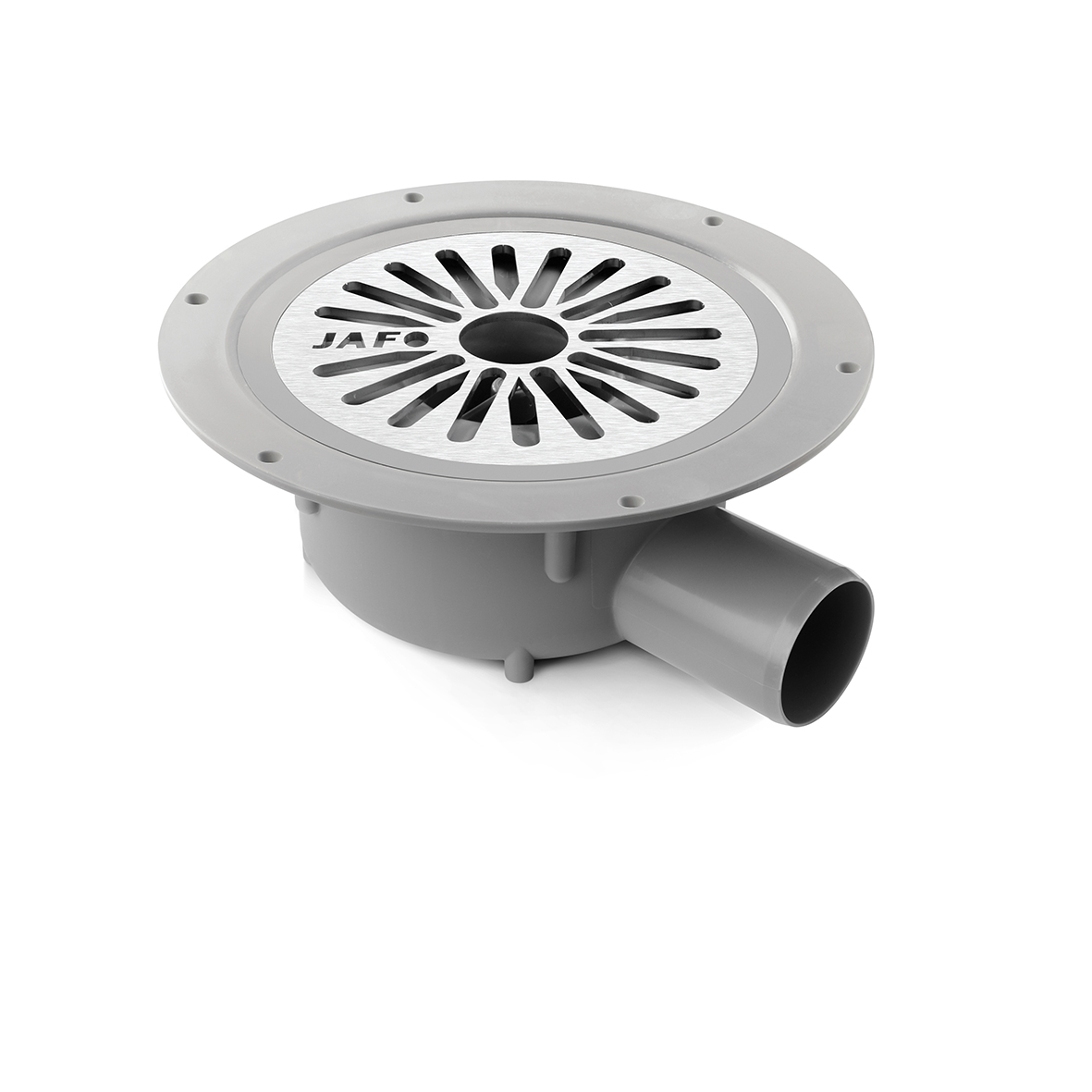 Golvbrunn med extremt låg bygghöjd (86 mm). Golvbrunnen levereras med mattpaket (MP) med urtag Ø34 för anslutning mot plastmatta som tätskikt alternativt folie- eller rollat tätskikt under klinkergolv och ett pungvattenlås som enkelt kan rengöras eller bytas vid behov. OBS! JAFOs golvbrunnar i plast finns både med och utan mattpaket. Golvbrunnar utan mattpaket kompletteras med en överdel avsedd för plast- eller klinkergolv. Golvbrunnen kan vid behov förses med förhöjningsring.