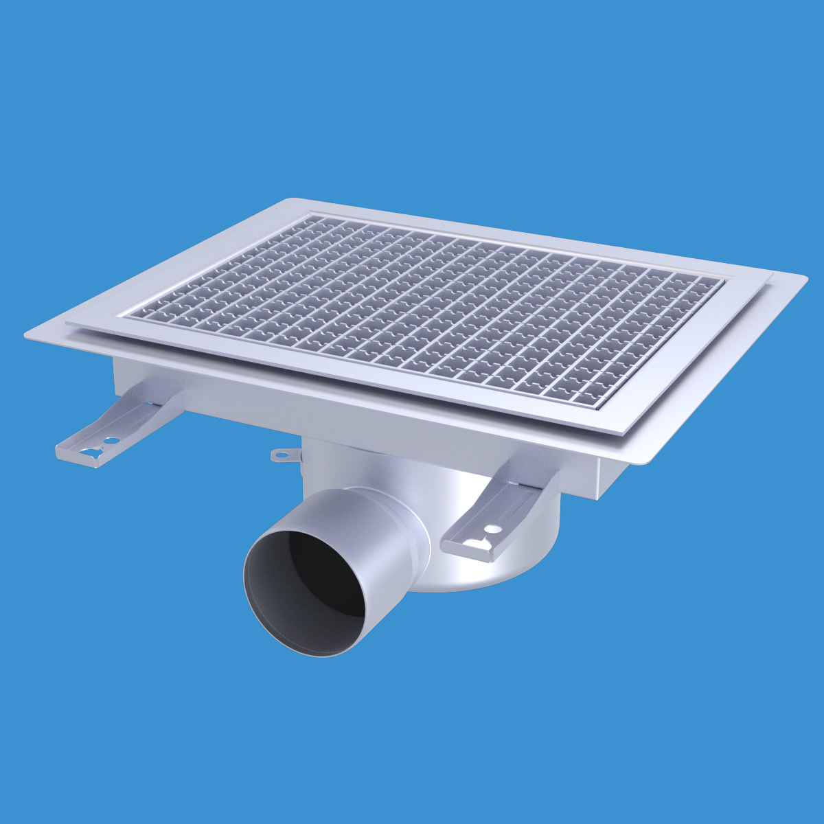 FURO 113 för bl.a. storkök och industri med lättare belastningar. Av syrafast rostfritt stål med sidoutlopp Ø110 mm, fyrkantöverdel med galler L15 dim. 400x300 mm. För Klinkergolv K4, tätskikt som klistras mot klisterfläns. Komplettera ev. med silkorg 7120796.