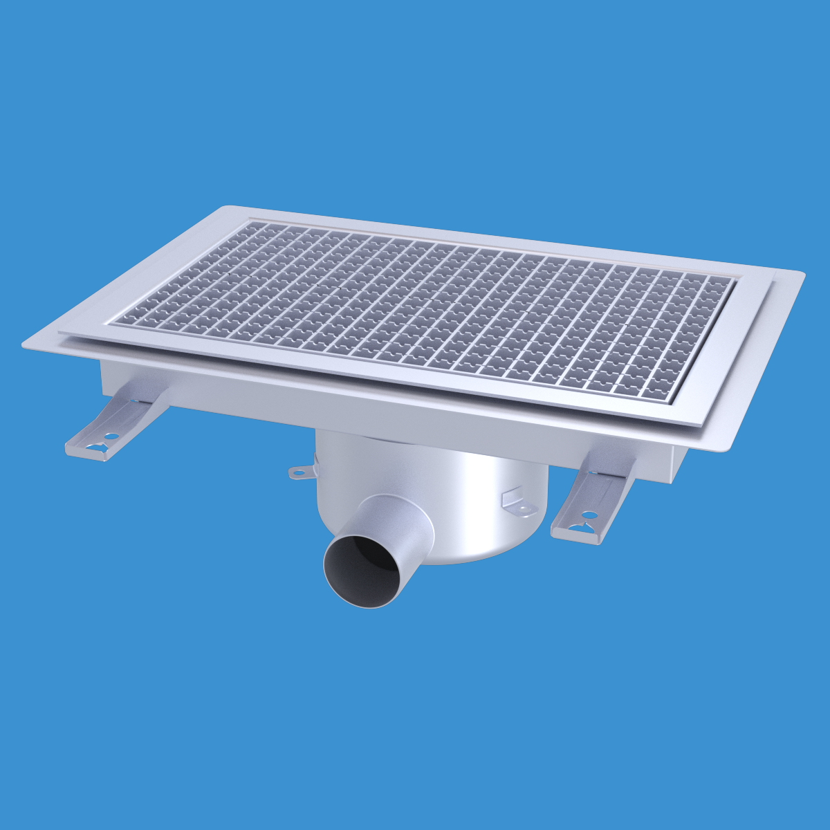 FURO 113 för bl.a. storkök och industri med lättare belastningar. Av syrafast rostfritt stål med sidoutlopp Ø75 mm, fyrkantöverdel med galler L15 dim. 500x300 mm. För Klinkergolv K4, tätskikt som klistras mot klisterfläns. Komplettera ev. med silkorg 7120796.