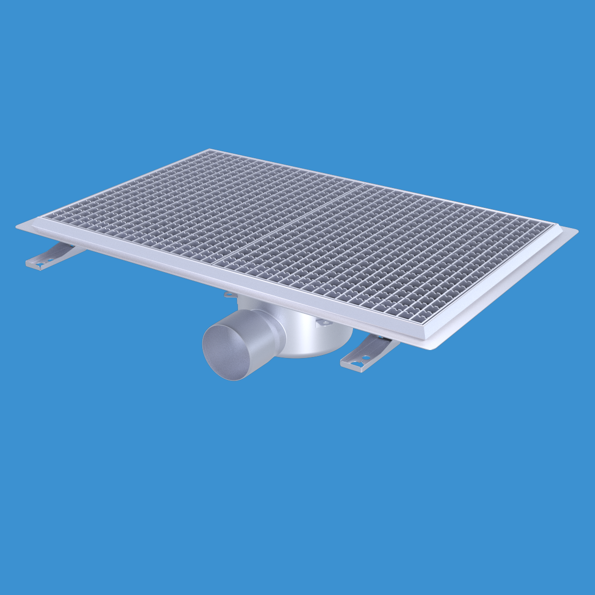 FURO 113 för bl.a. storkök och industri med lättare belastningar. Av syrafast rostfritt stål med sidoutlopp Ø110 mm, fyrkantöverdel med galler L15 dim. 800x500 mm. För massagolv. Komplettera ev. med silkorg 7120796.