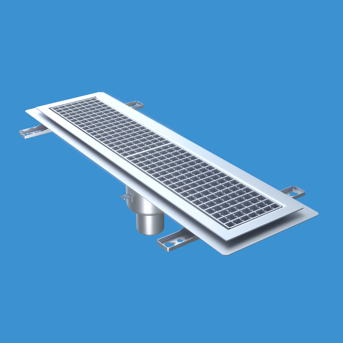 FURO 115 för bl.a. storkök och industri med lättare belastningar. Av syrafast rostfritt stål med bottenutlopp Ø75 mm, fyrkantöverdel med galler L15 dim. 800x150 mm. För Klinkergolv K4, tätskikt som klistras mot klisterfläns. Komplettera ev. med silkorg 7119548.