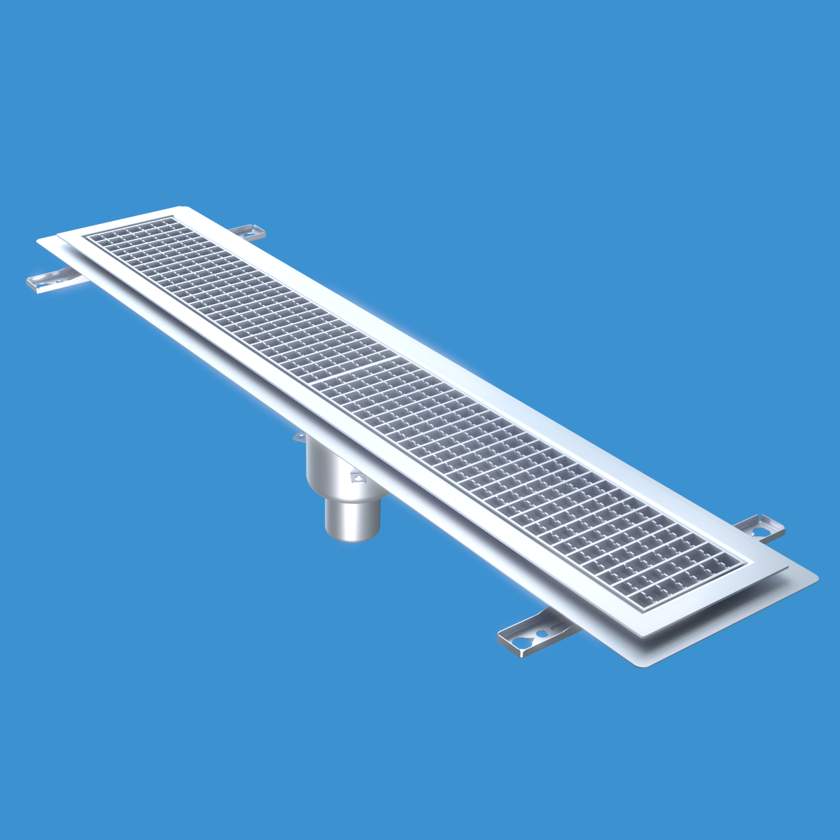 FURO 115 för bl.a. storkök och industri med lättare belastningar. Av syrafast rostfritt stål med bottenutlopp Ø75 mm, fyrkantöverdel med galler L15 dim. 1200x150 mm. För Klinkergolv K4, tätskikt som klistras mot klisterfläns. Komplettera ev. med silkorg 7119548.
