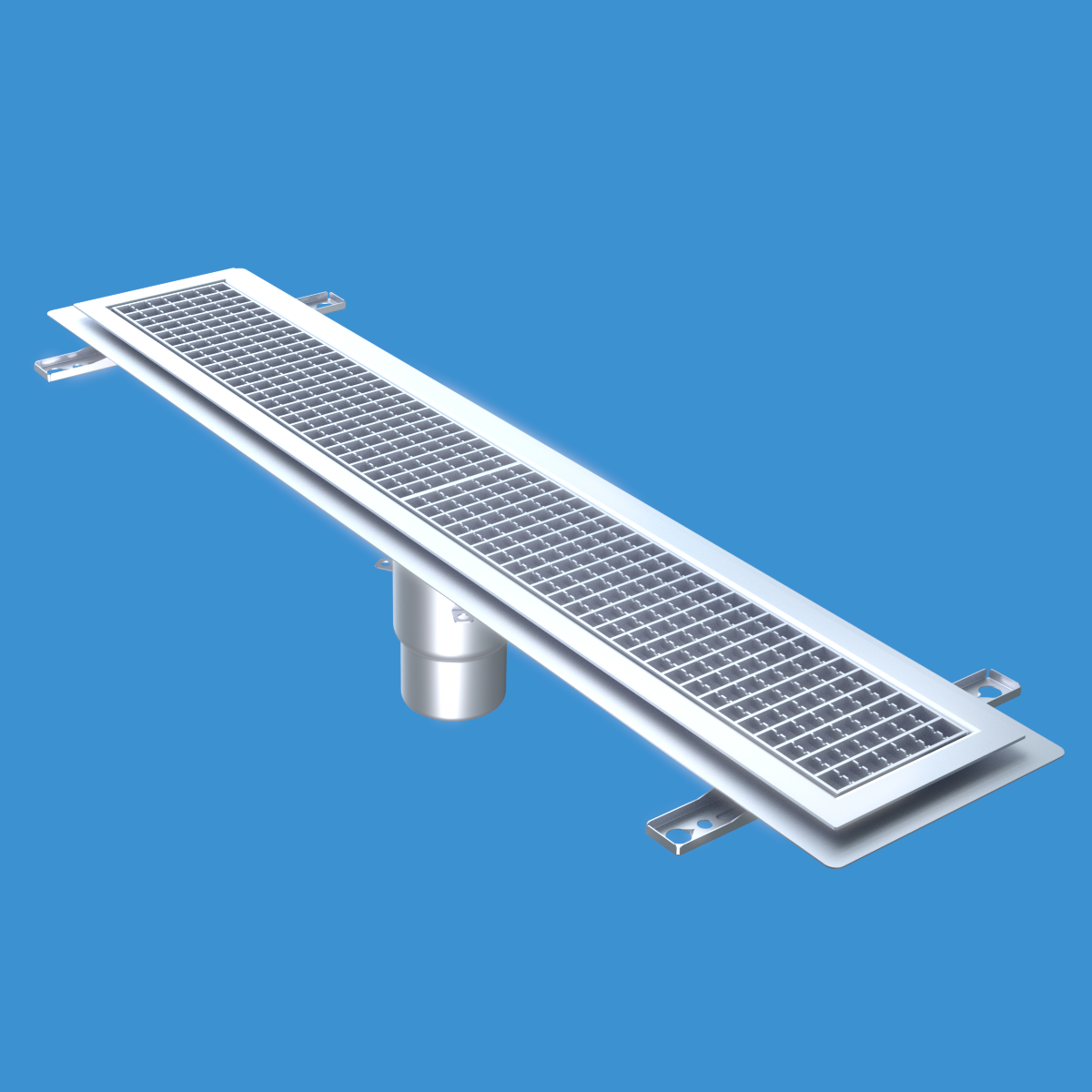 FURO 115 för bl.a. storkök och industri med lättare belastningar. Av syrafast rostfritt stål med bottenutlopp Ø110 mm, fyrkantöverdel med galler L15 dim. 1200x150 mm. För Klinkergolv K4, tätskikt som klistras mot klisterfläns. Komplettera ev. med silkorg 7119548.
