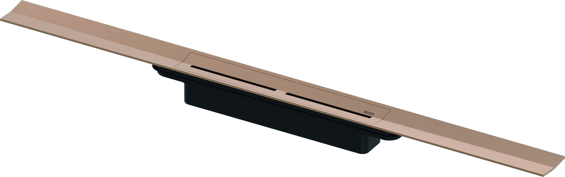 TECEdrainprofile Golvränna med färgad PVD-ytbeläggning. Golvränna för duschdränering. För limning med kakelfix. PVD-beläggningens färg är samma som TECEsquare metall WC spolknappar i metall och hansgrohe / AXOR-sortimentet.
