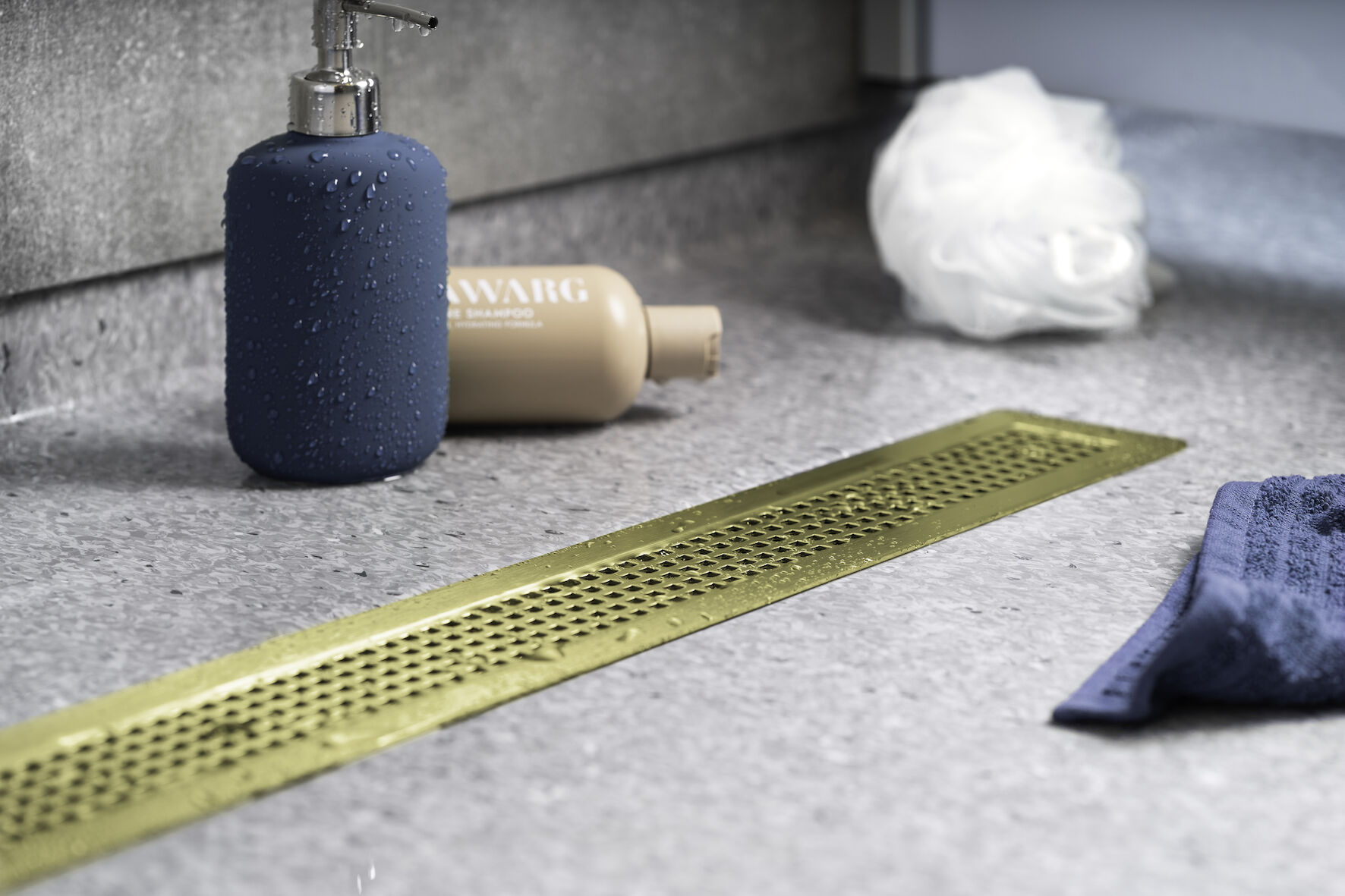 Golvbrunnssil Chess Mässing i ett linjärt utförande med hög kvalitet i mässingfärgat rostfritt stål Golvbrunnssilen levereras med skruvar passar till designserien Purus Line Vinyl Plus 800.