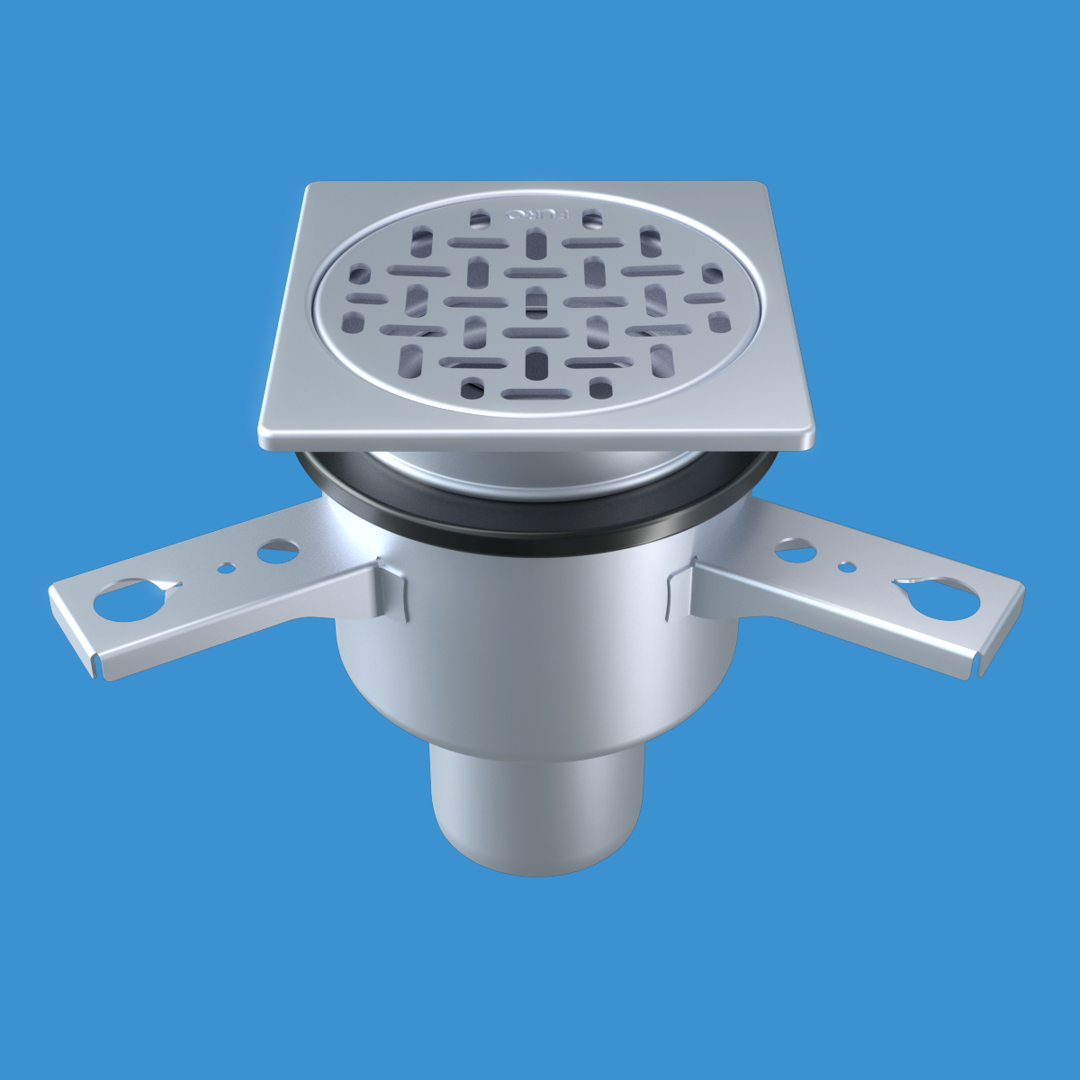 FURO 007 för alla våtutrymmen i offentliga miljöer. Av syrafast rostfritt stål. Dim. Ø132 mm. Bottenutlopp Ø75 mm. Sil i belastningsklass K3. För klinkergolv K3, utan tätskikt.
