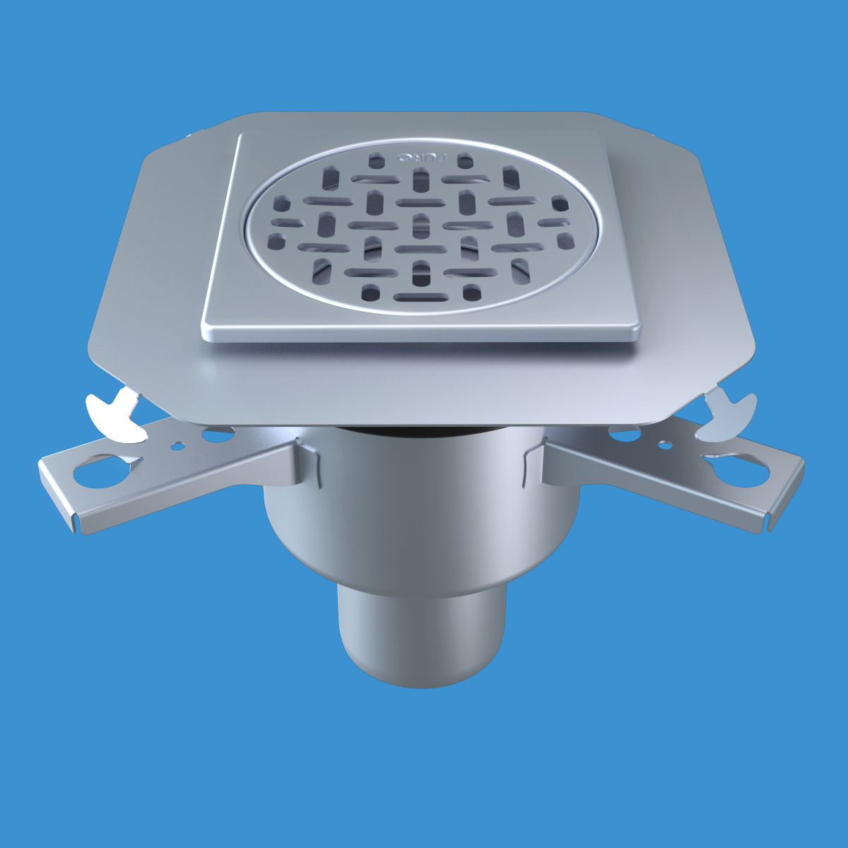 FURO 007 för alla våtutrymmen i offentliga miljöer. Av syrafast rostfritt stål. Dim. Ø132 mm. Bottenutlopp Ø75 mm. Sil i belastningsklass K3. För klinkergolv K4, tätskikt som ansluts mot slät rostfri fläns.