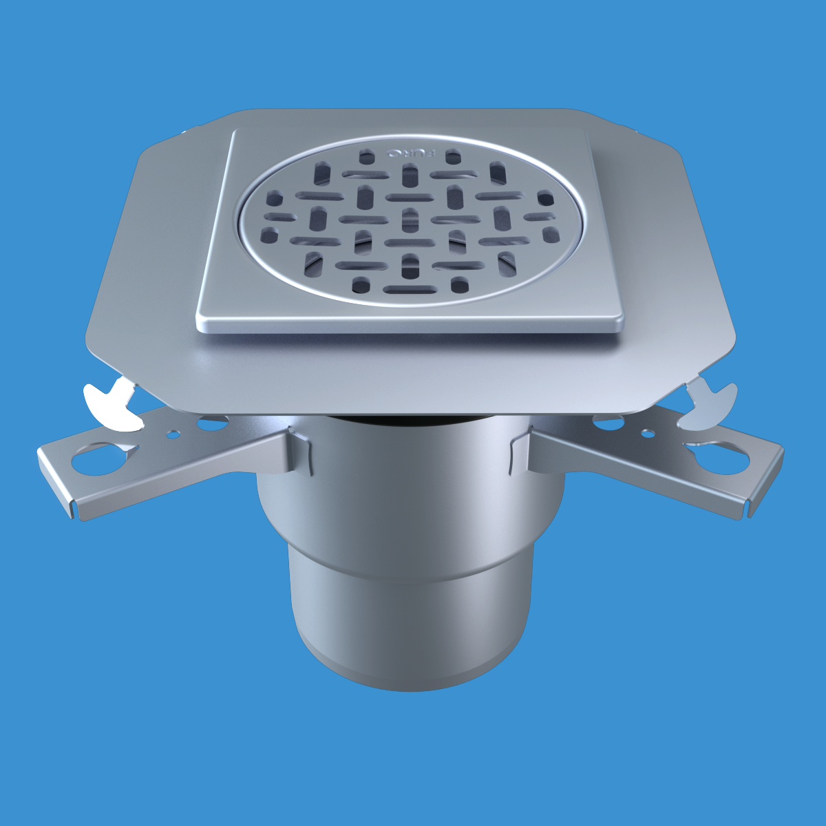 FURO 007 för alla våtutrymmen i offentliga miljöer. Av syrafast rostfritt stål. Dim. Ø132 mm. Bottenutlopp Ø110 mm. Sil i belastningsklass K3. För klinkergolv K4, tätskikt som ansluts mot slät rostfri fläns.