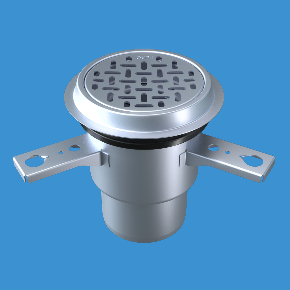 FURO 007 för alla våtutrymmen i offentliga miljöer. Av syrafast rostfritt stål. Dim. Ø132 mm. Bottenutlopp Ø110 mm. Sil i belastningsklass K3. För massagolv.
