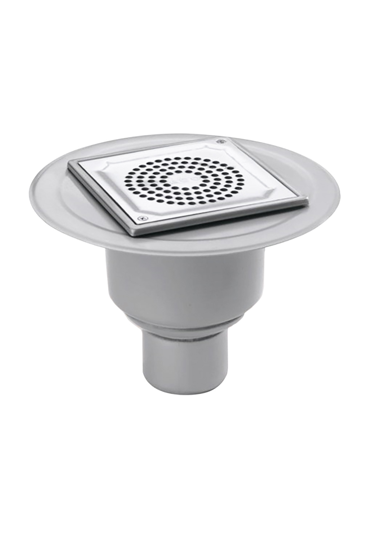 ACO Golvbrunn EG150 med bottenutlopp DN75. Anpassad för klinkergolv med tätskikt. Tillverkad i AISI 304 (1.4301). Galler 200 x 200 mm.