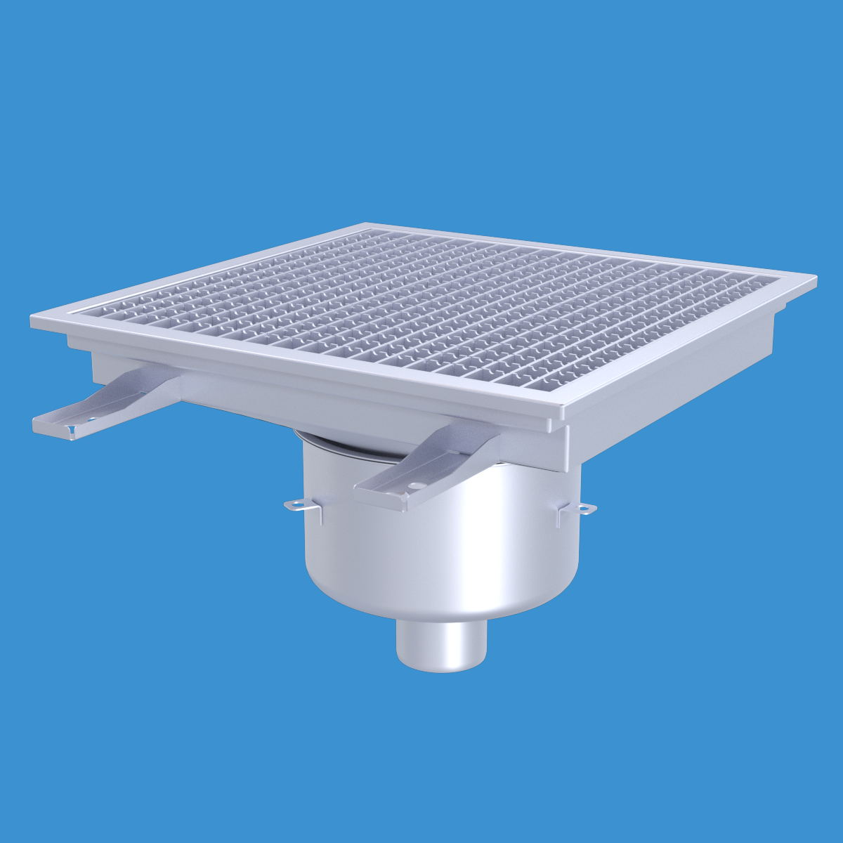 FURO 113 för bl.a. storkök och industri med lättare belastningar. Av syrafast rostfritt stål med bottenutlopp Ø75 mm, fyrkantöverdel med galler L15 dim. 400x400 mm. För Klinkergolv K3, utan tätskikt alt. Stålslipat betonggolv. Komplettera ev. med silkorg 7120796.