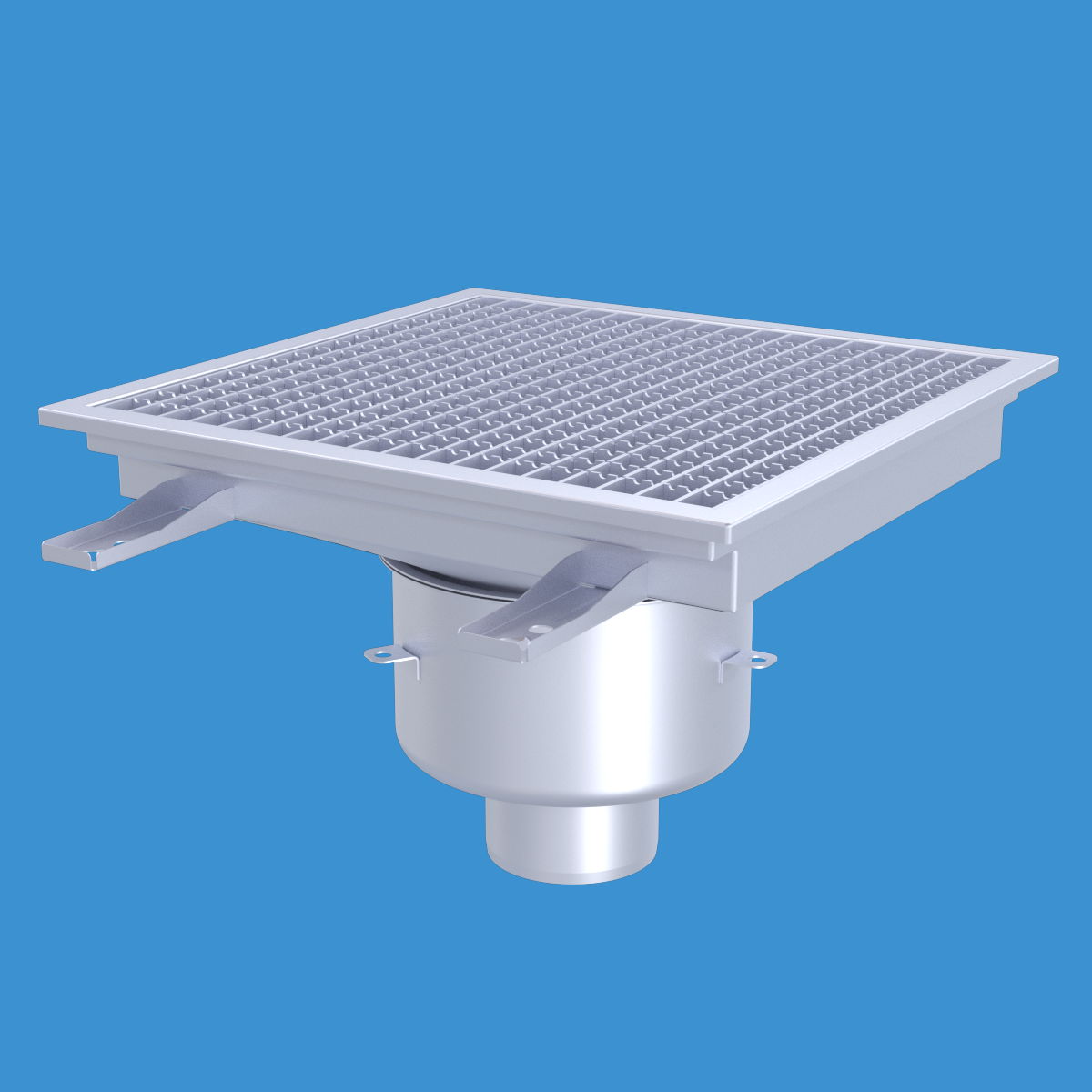 FURO 113 för bl.a. storkök och industri med lättare belastningar. Av syrafast rostfritt stål med bottenutlopp Ø110 mm, fyrkantöverdel med galler L15 dim. 400x400 mm. För Klinkergolv K3, utan tätskikt alt. Stålslipat betonggolv. Komplettera ev. med silkorg 7120796.