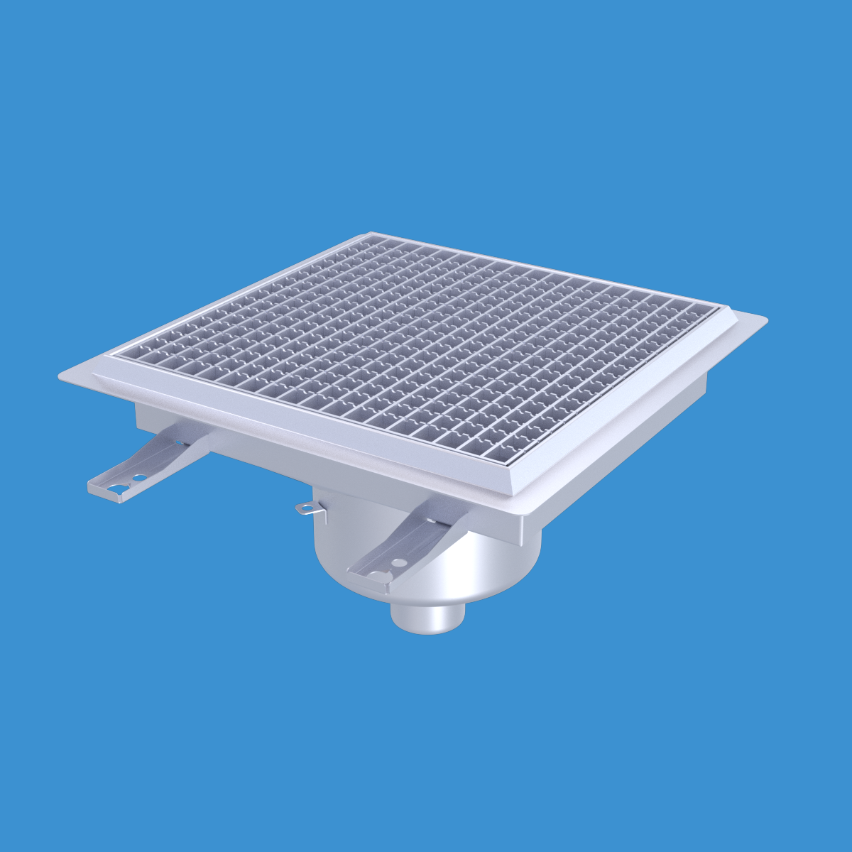 FURO 113 för bl.a. storkök och industri med lättare belastningar. Av syrafast rostfritt stål med bottenutlopp Ø75 mm, fyrkantöverdel med galler L15 dim. 400x400 mm. För massagolv. Komplettera ev. med silkorg 7120796.