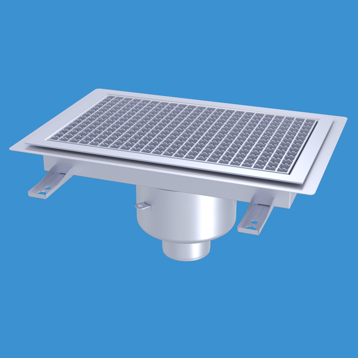 FURO 113 för bl.a. storkök och industri med lättare belastningar. Av syrafast rostfritt stål med bottenutlopp Ø110 mm, fyrkantöverdel med galler L15 dim. 500x300 mm. För Klinkergolv K4, tätskikt som klistras mot klisterfläns. Komplettera ev. med silkorg 7120796.