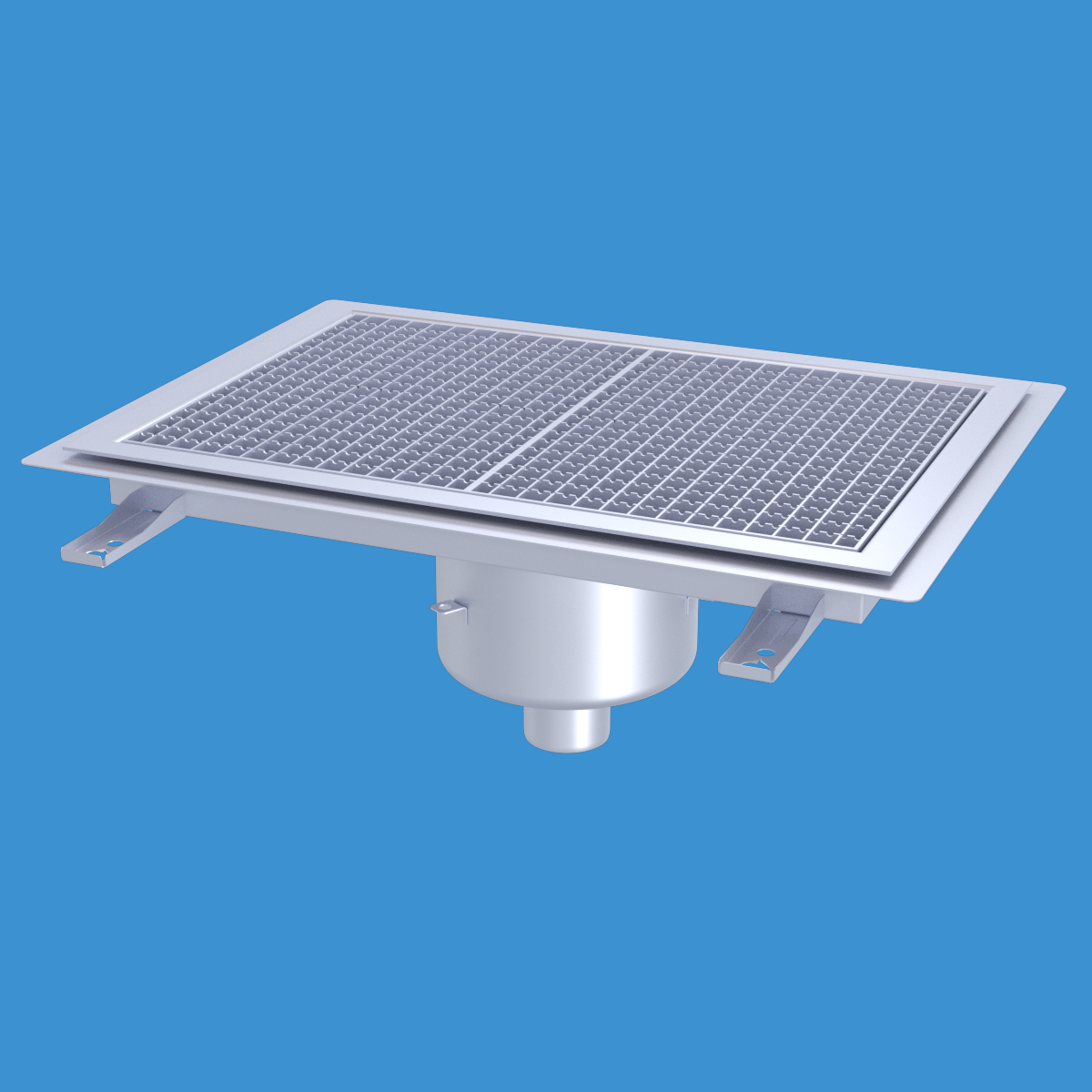 FURO 113 för bl.a. storkök och industri med lättare belastningar. Av syrafast rostfritt stål med bottenutlopp Ø75 mm, fyrkantöverdel med galler L15 dim. 600x400 mm. För Klinkergolv K4, tätskikt som klistras mot klisterfläns. Komplettera ev. med silkorg 7120796.
