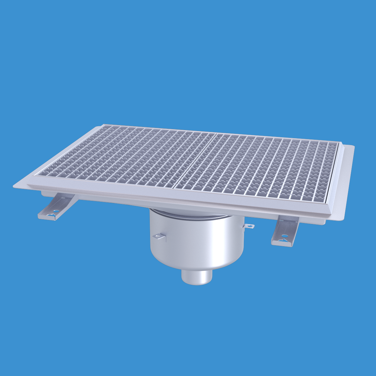 FURO 113 för bl.a. storkök och industri med lättare belastningar. Av syrafast rostfritt stål med bottenutlopp Ø75 mm, fyrkantöverdel med galler L15 dim. 600x400 mm. För massagolv. Komplettera ev. med silkorg 7120796.