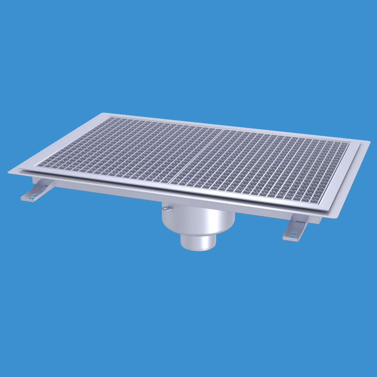 FURO 113 för bl.a. storkök och industri med lättare belastningar. Av syrafast rostfritt stål med bottenutlopp Ø110 mm, fyrkantöverdel med galler L15 dim. 800x500 mm. För Klinkergolv K4, tätskikt som klistras mot klisterfläns. Komplettera ev. med silkorg 7120796.