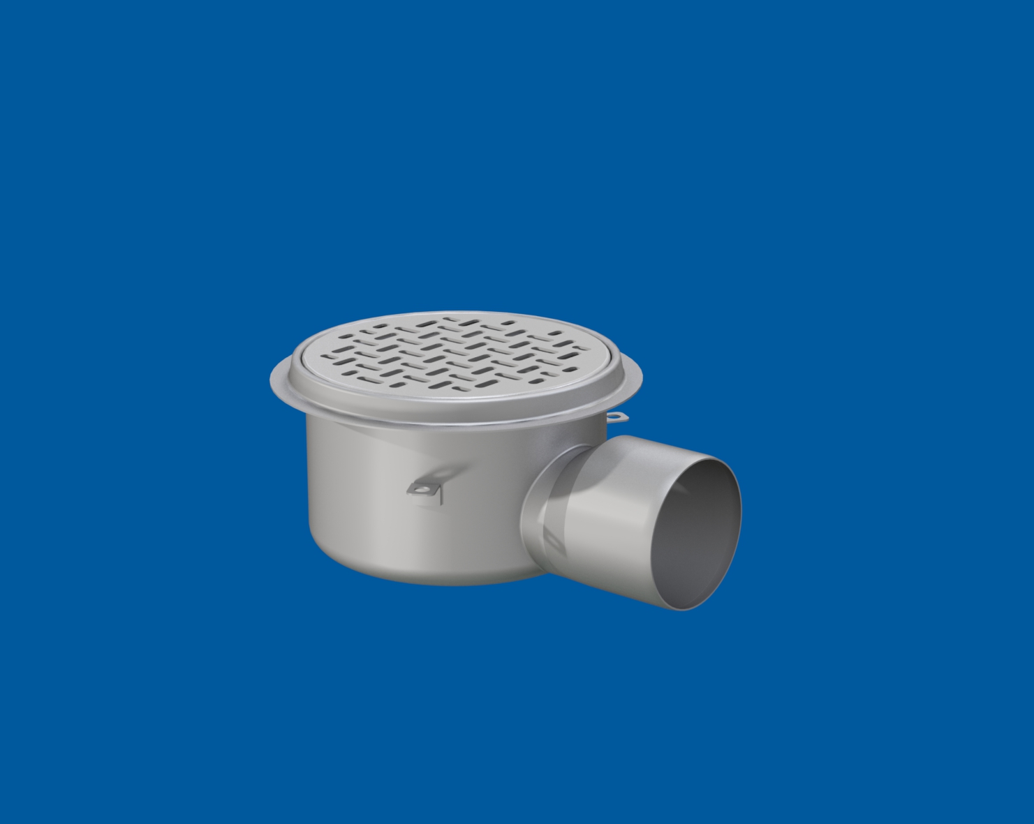 FURO 008 för alla våtutrymmen i offentliga miljöer. Av syrafast rostfritt stål. Dim. Ø227 mm. Sidoutlopp Ø110 mm. Sil i belastningsklass K3. För massagolv.