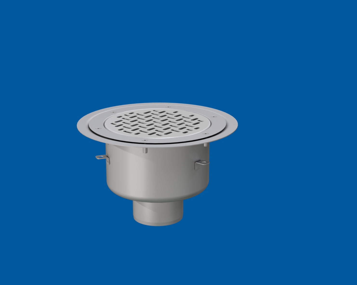 FURO 008 för alla våtutrymmen i offentliga miljöer. Av syrafast rostfritt stål. Dim. Ø227 mm. Bottenutlopp Ø110 mm. Sil i belastningsklass K3. För golv med plastmatta.