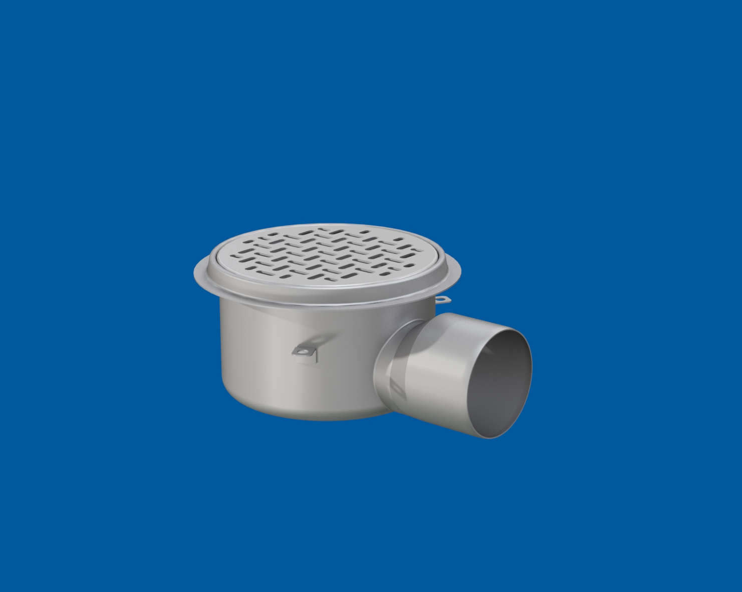 FURO 008 för alla våtutrymmen i offentliga miljöer. Av syrafast rostfritt stål. Dim. Ø227 mm. Sidoutlopp Ø110 mm. Sil i belastningsklass K3. För stålslipat betonggolv utan tätskikt.