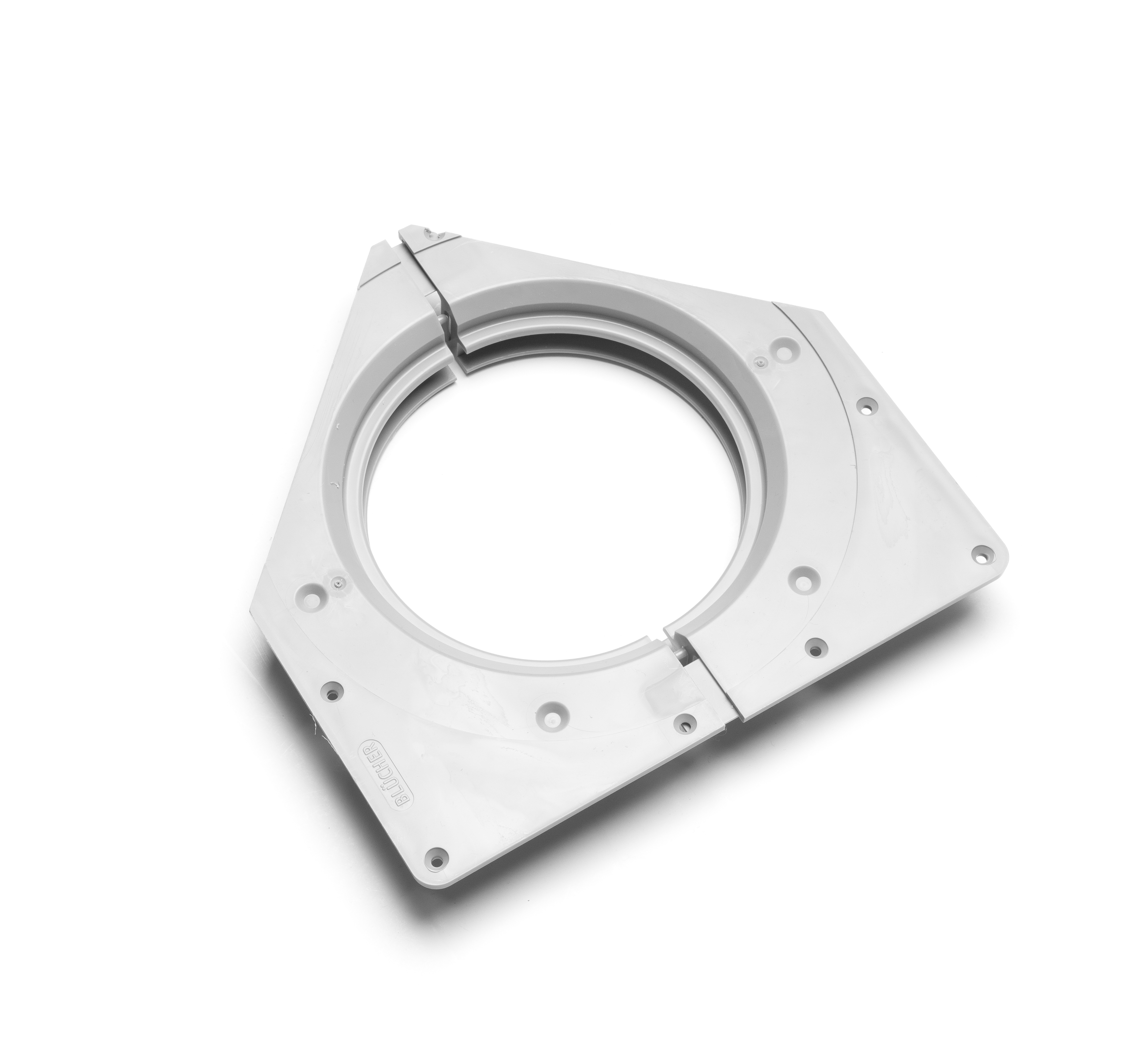 Används vid installation i träbjälklag av golvbrunn BLÜCHER Drain MULTI TRIO, vid montage i hörn.