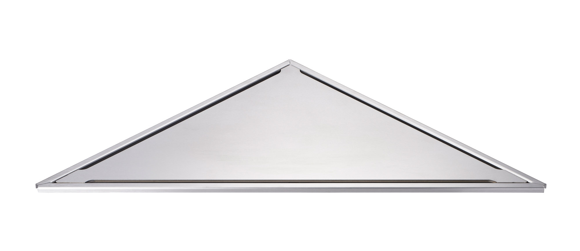 Den finskdesignade och finsktillverkade eleganta golvbrunnen Vieser Corner Core för hörninstallation har en sil som ger badrummet en personlig och vacker finish.