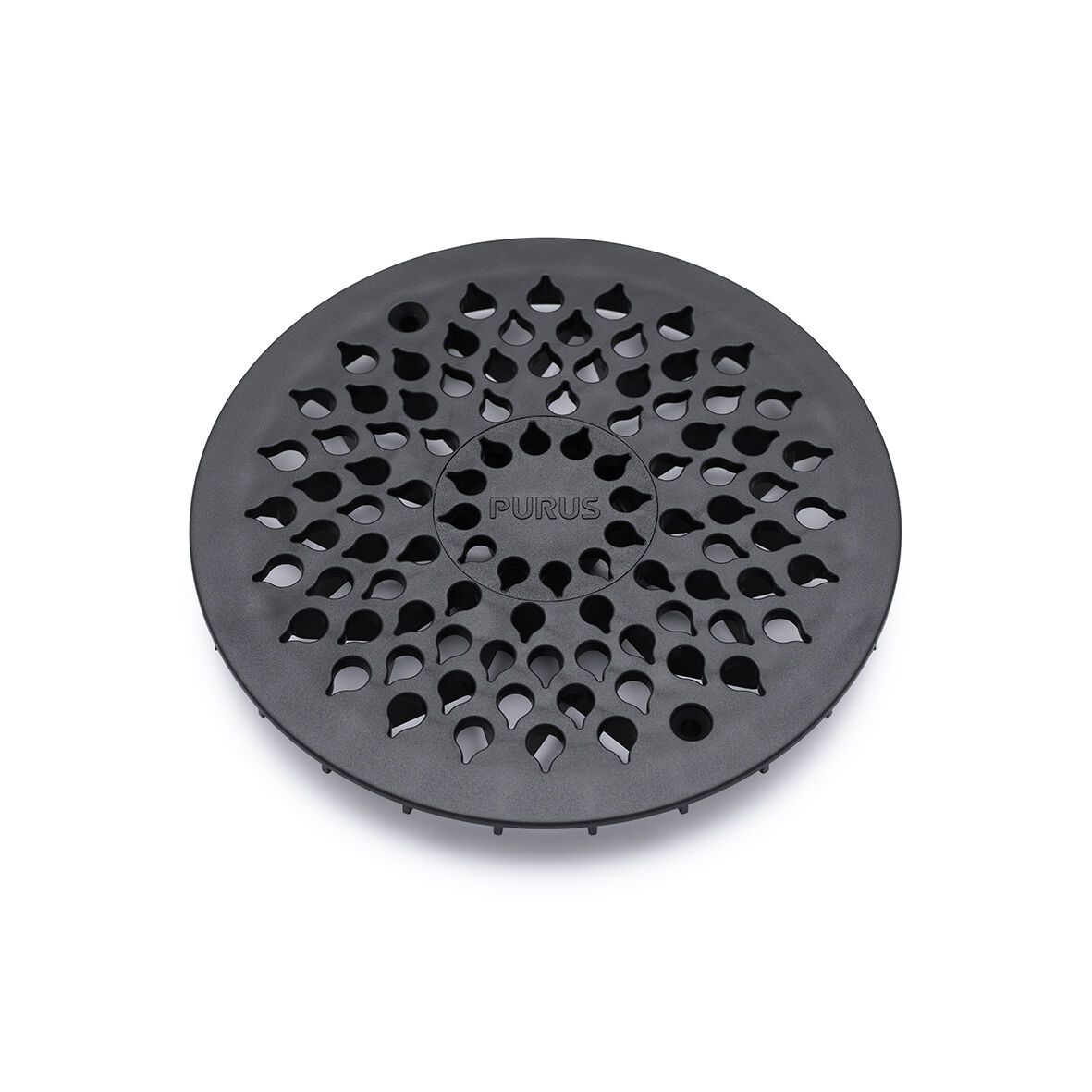 Golvbrunnssil Drop 150 tillverkad av 100% återvunnen plast i trendigt mattsvart med urtag för upp till 40 mm utloppsrör. Passar alla Purus golvbrunnar med sildimension 150 mm. Silen är utformad så där inte blir något kvarstående vatten runt silen. Den har belastningsklass K3.
