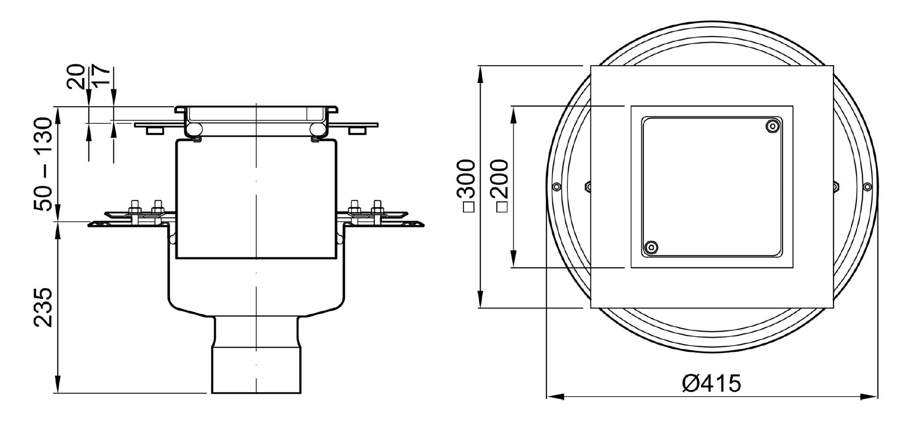 Spol- och rensbrunn för inbyggd horisontell spillvattenledning inomhus. Avsedd att gjutas in i golv, finns i olika utföranden för olika golvbeläggningar, belastningsklasser samt med eller utan klämfläns för tätskikt. Ställbarhet i höjdled varierar mellan modellerna.