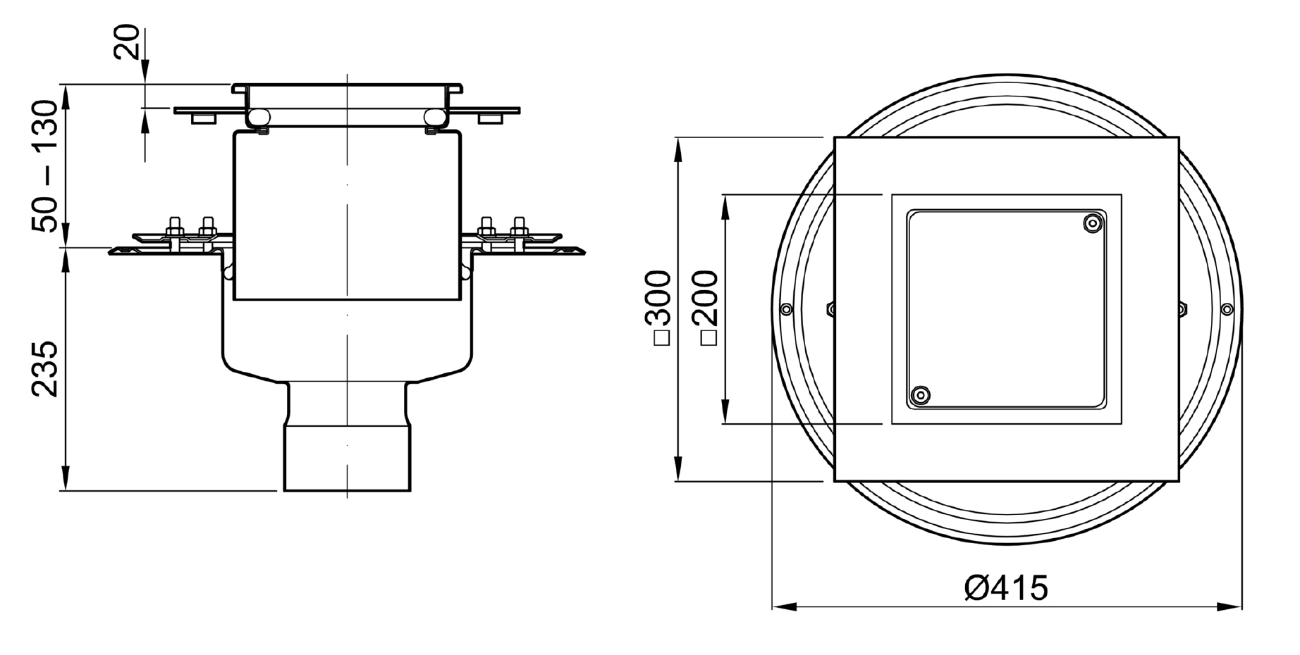 Spol- och rensbrunn för inbyggd horisontell spillvattenledning inomhus. Avsedd att gjutas in i golv, finns i olika utföranden för olika golvbeläggningar, belastningsklasser samt med eller utan klämfläns för tätskikt. Ställbarhet i höjdled varierar mellan modellerna.
