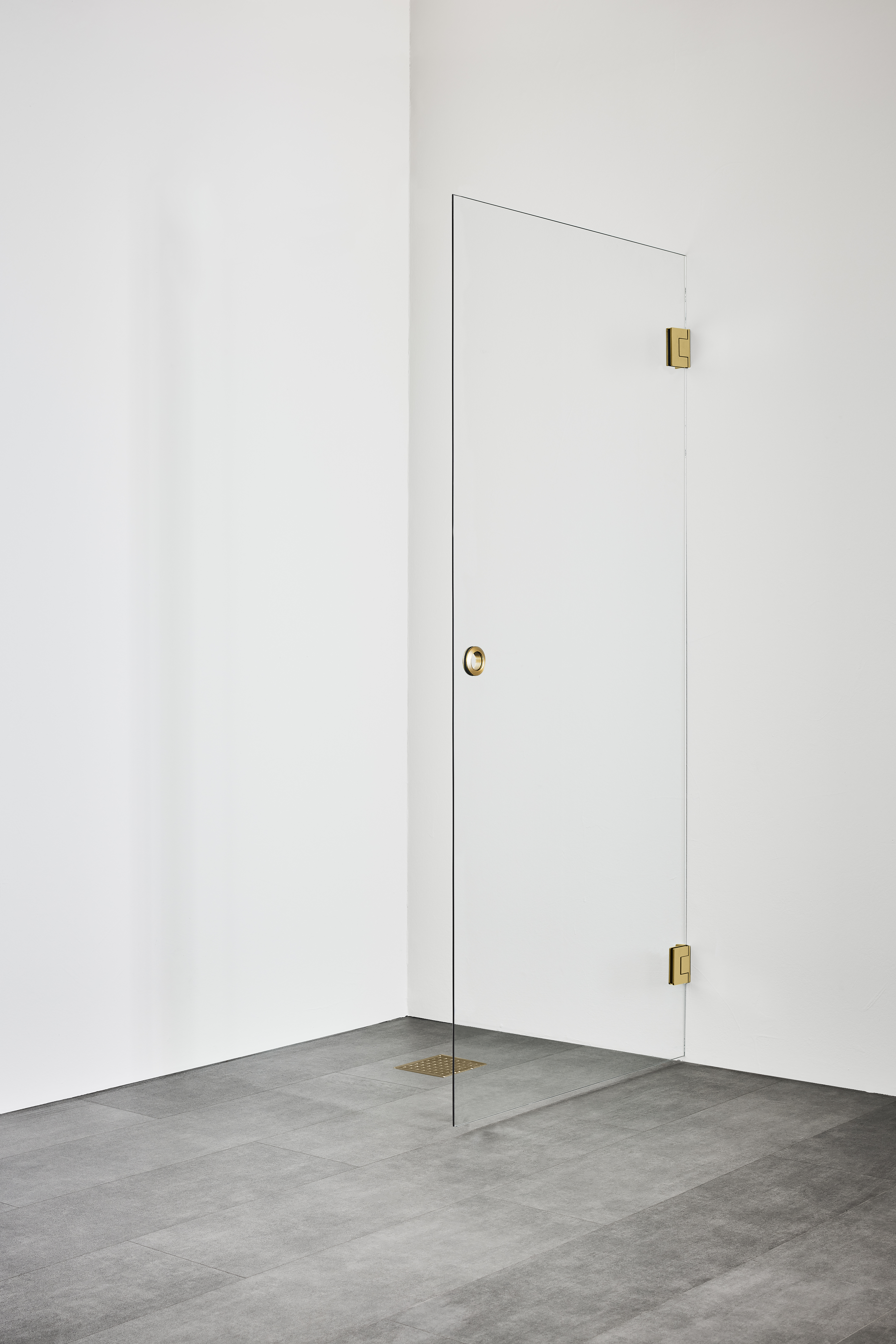 En exklusiv duschdörr med smäckra beslag och en elegant handtagslösning. Välj mellan tre färger, krom, matt svart eller borstad mässingsfärg. De stora glasytorna ger ett luftigt intryck och skapar en härlig rymd i badrummet.