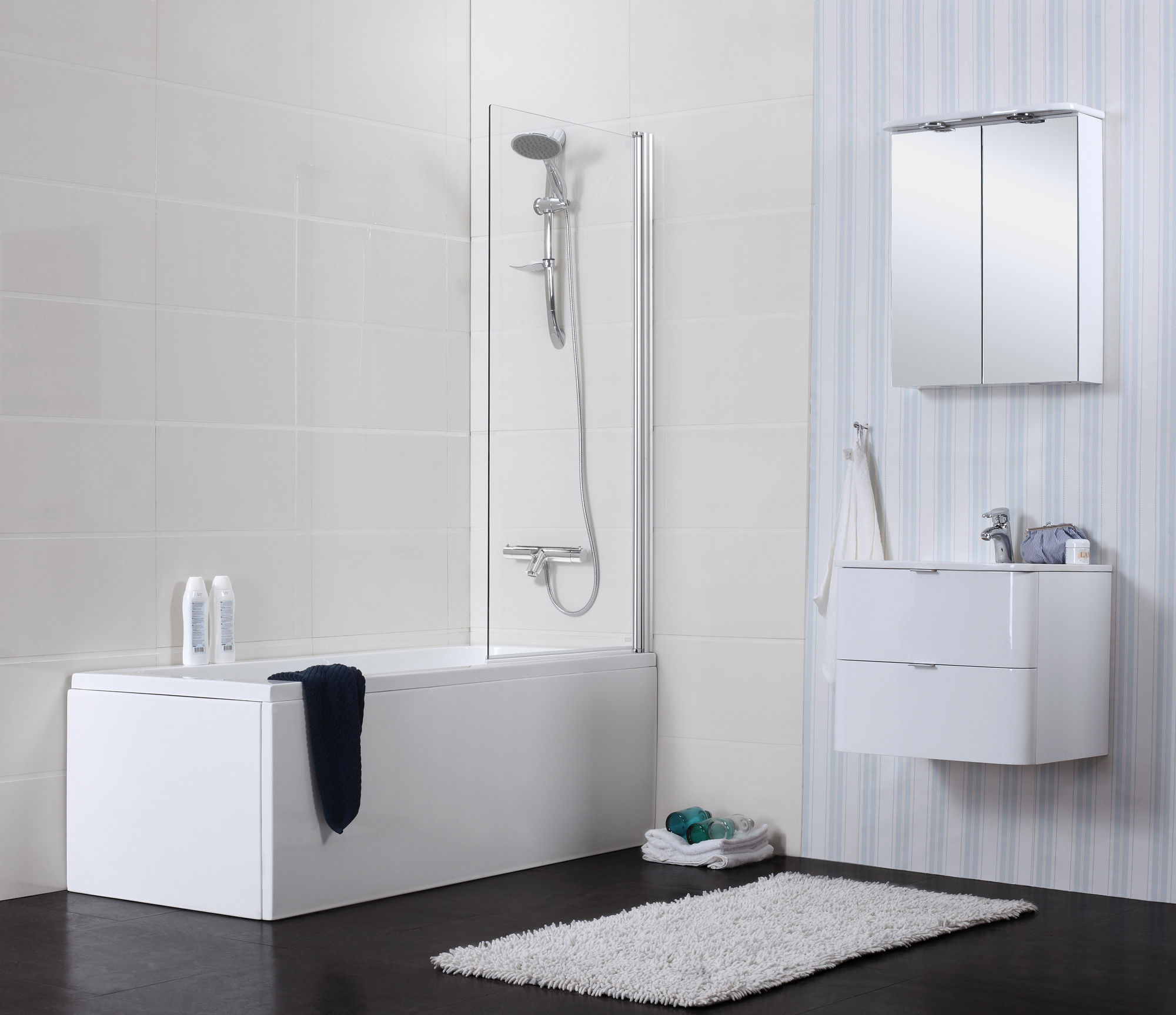 Ett rektangulärt, prisvärt och sobert badkar i sanitetsacryl med räfflad botten. Levereras inklusive bottenventil, rostfritt stativ och har ställbara fötter. Front och gavel ingår.