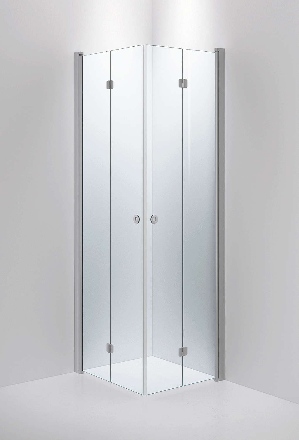 LINC Angel Flex är en duschlösning i 6 mm säkerhetsglas där dörrarna viks på mitten. Det underhållsfria, patenterade lyftgångjärnet höjer glaset 7 mm i öppet läge vilket underlättar rengöring, och har dessutom en konstruktion som gör installationen ovanligt smidig. LINC Angel Flex kan limmas upp med SAFE-FIXoch integreras med duschförvaringen PILE.