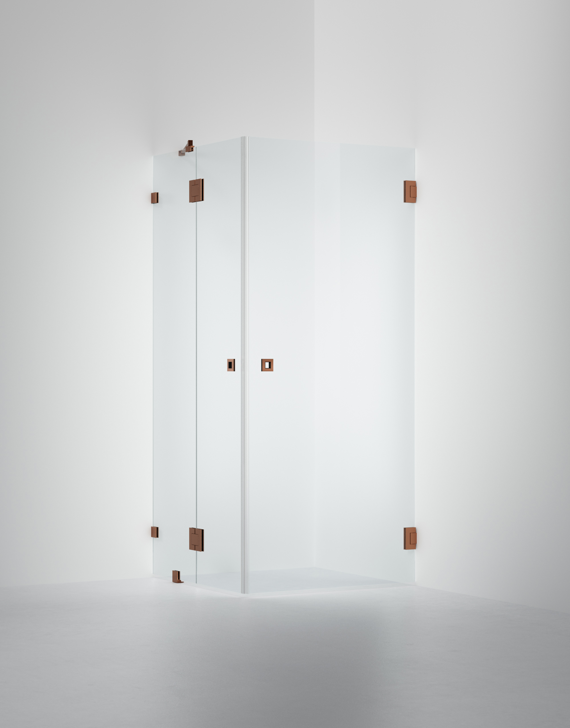 ARC 14 är en avskalad och vacker duschhörna i 8 mm säkerhetsglas och egendesignade beslag i krom med en liten fast vägg. Lösningen har inga bottenlister men levereras med transparenta magnetlister där dörrarna möts, för att skydda glaskanterna och för att sluta tätt.