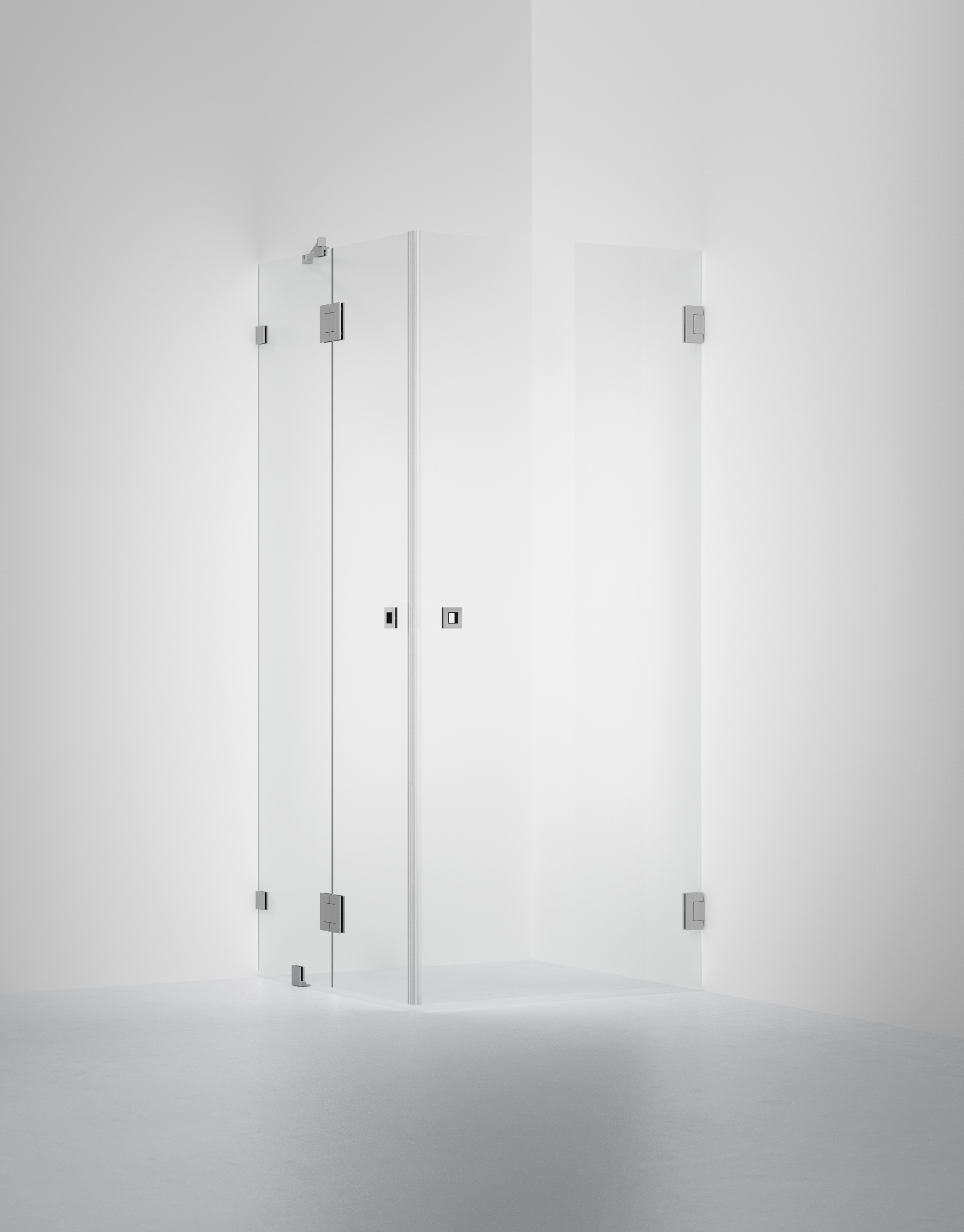 ARC 14 är en avskalad och vacker duschhörna i 8 mm säkerhetsglas och egendesignade beslag i krom med en liten fast vägg. Lösningen har inga bottenlister men levereras med transparenta magnetlister där dörrarna möts, för att skydda glaskanterna och för att sluta tätt.