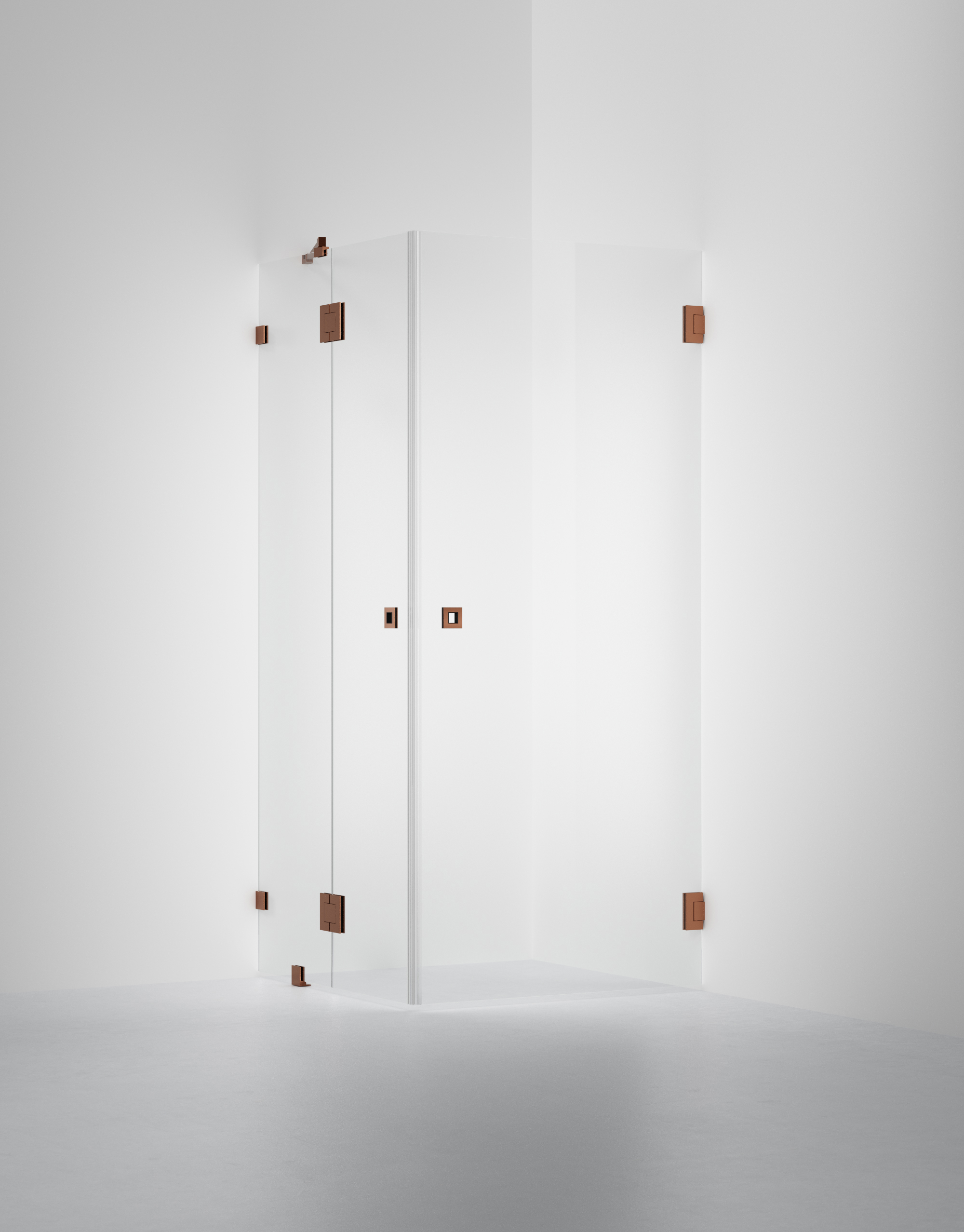 ARC 14 är en avskalad och vacker duschhörna i 8 mm säkerhetsglas och egendesignade beslag i krom med en liten fast vägg. Lösningen har inga bottenlister men levereras med transparenta magnetlister där dörrarna möts, för att skydda glaskanterna och för att sluta tätt.