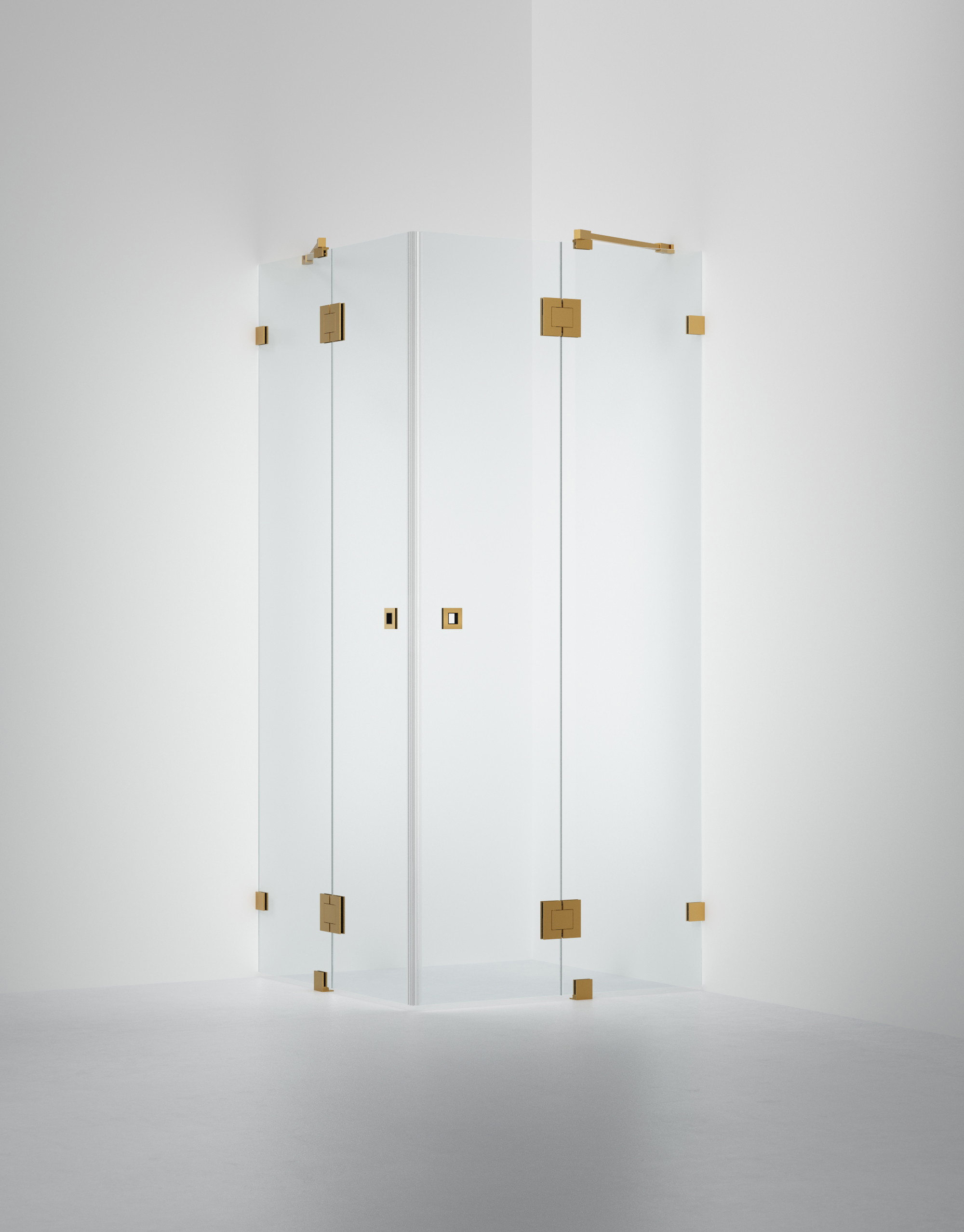 ARC 16 är en duschhörna i 8 mm säkerhetsglas och egendesignade beslag i krom med två fasta väggar. Lösningen har inga bottenlister men levereras med transparenta magnetlister där dörrarna möts, för att skydda glaskanterna och för att sluta tätt. Den smarta skenan håller duschstänk på rätt sida av duschutrymmet.