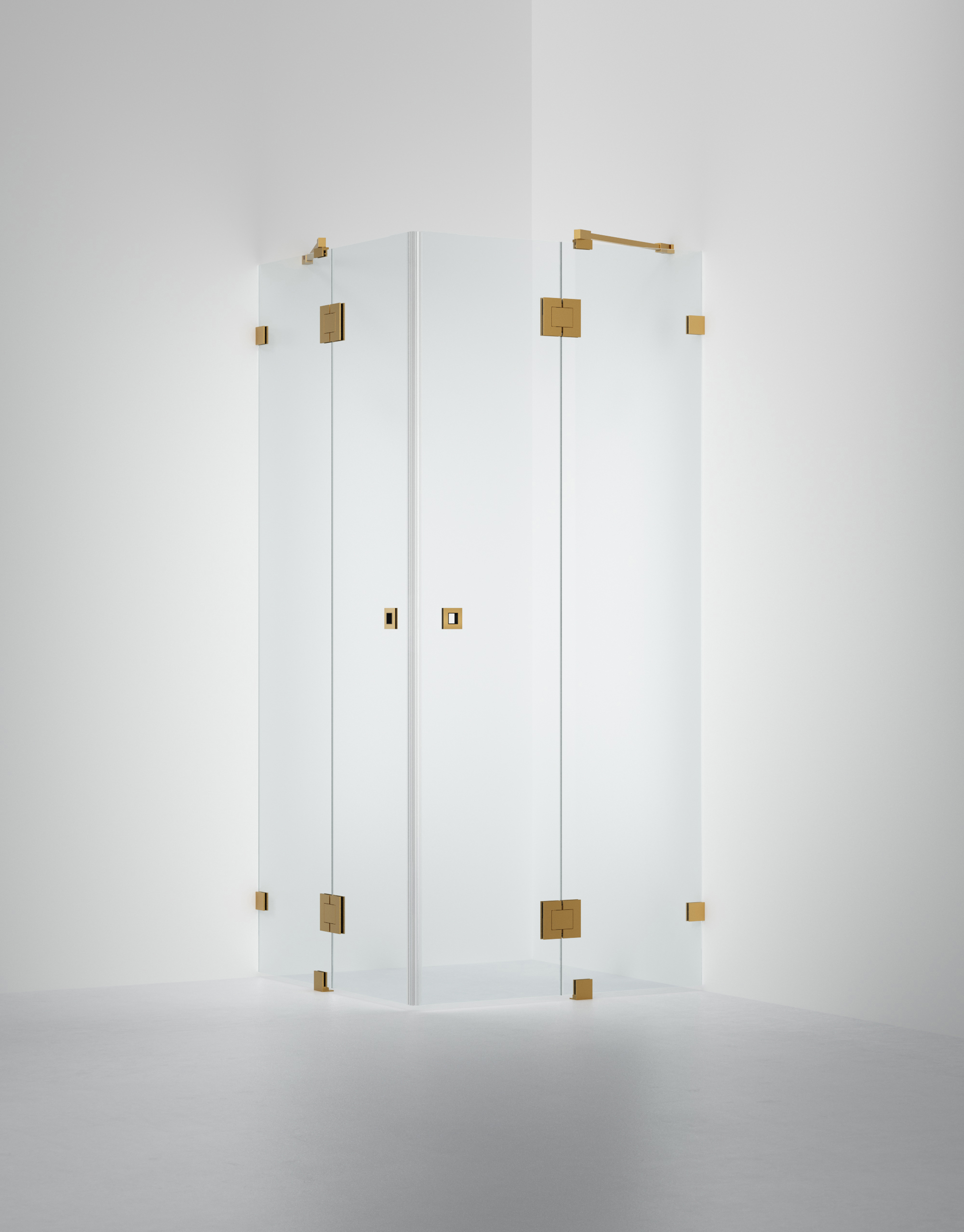 ARC 16 är en duschhörna i 8 mm säkerhetsglas och egendesignade beslag i krom med två fasta väggar. Lösningen har inga bottenlister men levereras med transparenta magnetlister där dörrarna möts, för att skydda glaskanterna och för att sluta tätt. Den smarta skenan håller duschstänk på rätt sida av duschutrymmet.