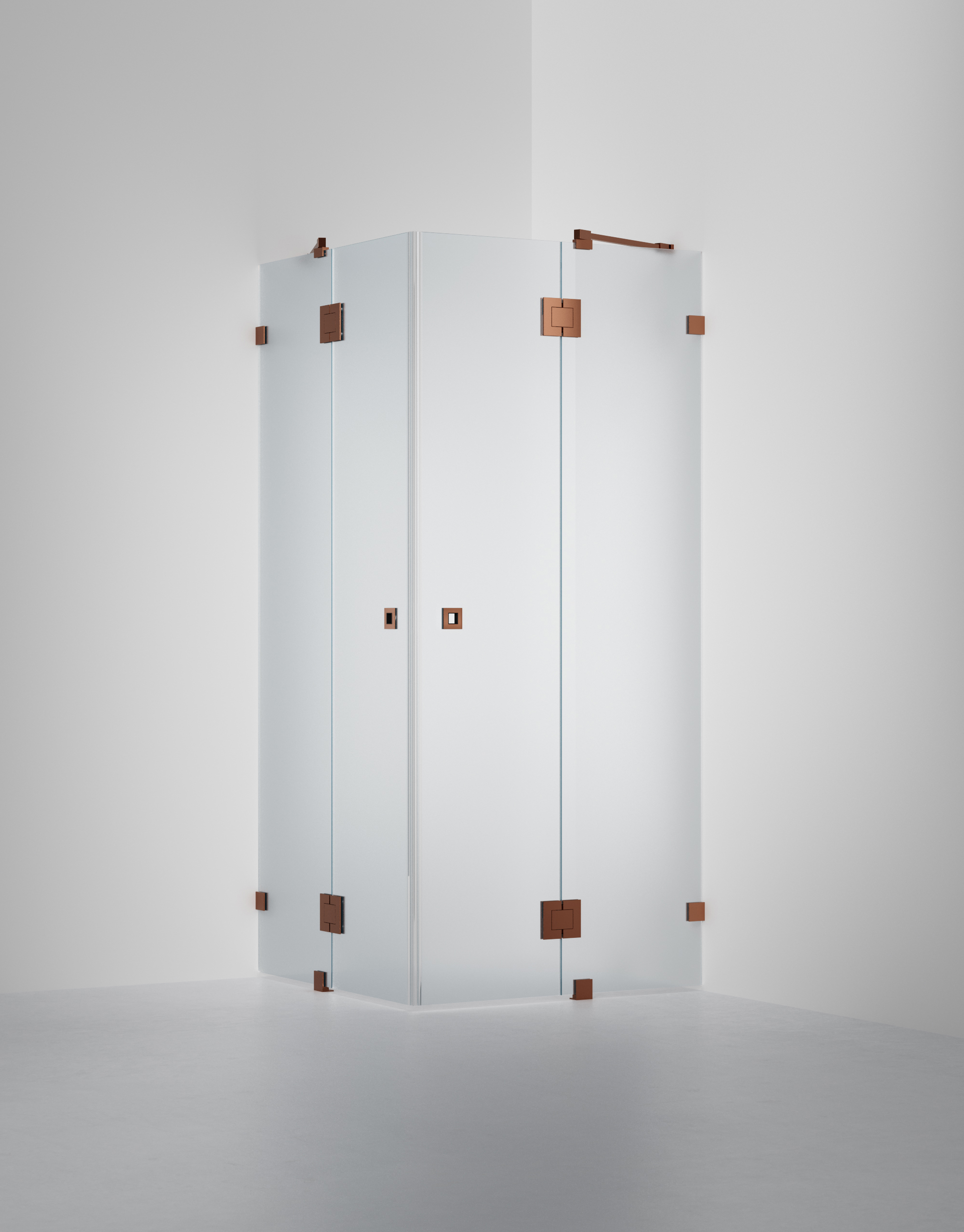 ARC 16 är en duschhörna i 8 mm säkerhetsglas och egendesignade beslag i krom med två fasta väggar. Lösningen har inga bottenlister men levereras med transparenta magnetlister där dörrarna möts, för att skydda glaskanterna och för att sluta tätt. Den smarta skenan håller duschstänk på rätt sida av duschutrymmet.