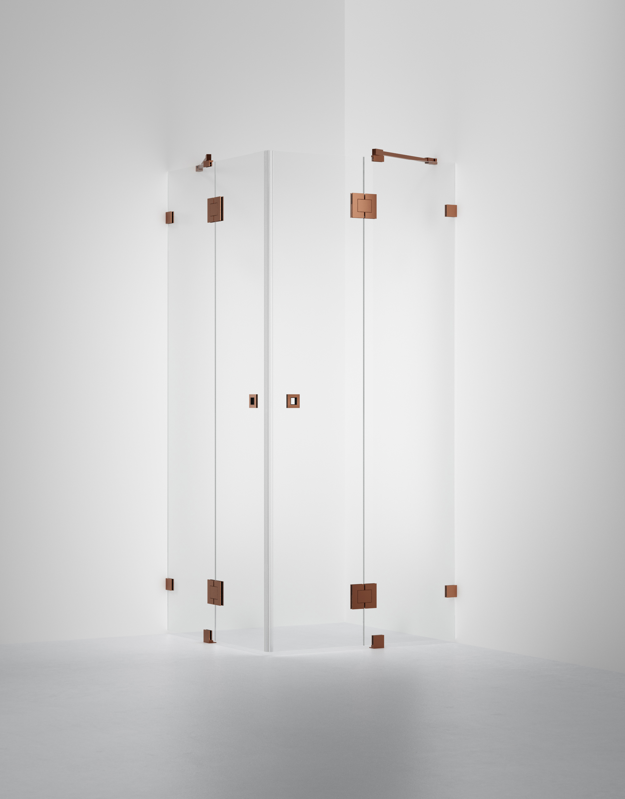 ARC 16 är en duschhörna i 8 mm säkerhetsglas och egendesignade beslag i krom med två fasta väggar. Lösningen har inga bottenlister men levereras med transparenta magnetlister där dörrarna möts, för att skydda glaskanterna och för att sluta tätt. Den smarta skenan håller duschstänk på rätt sida av duschutrymmet.