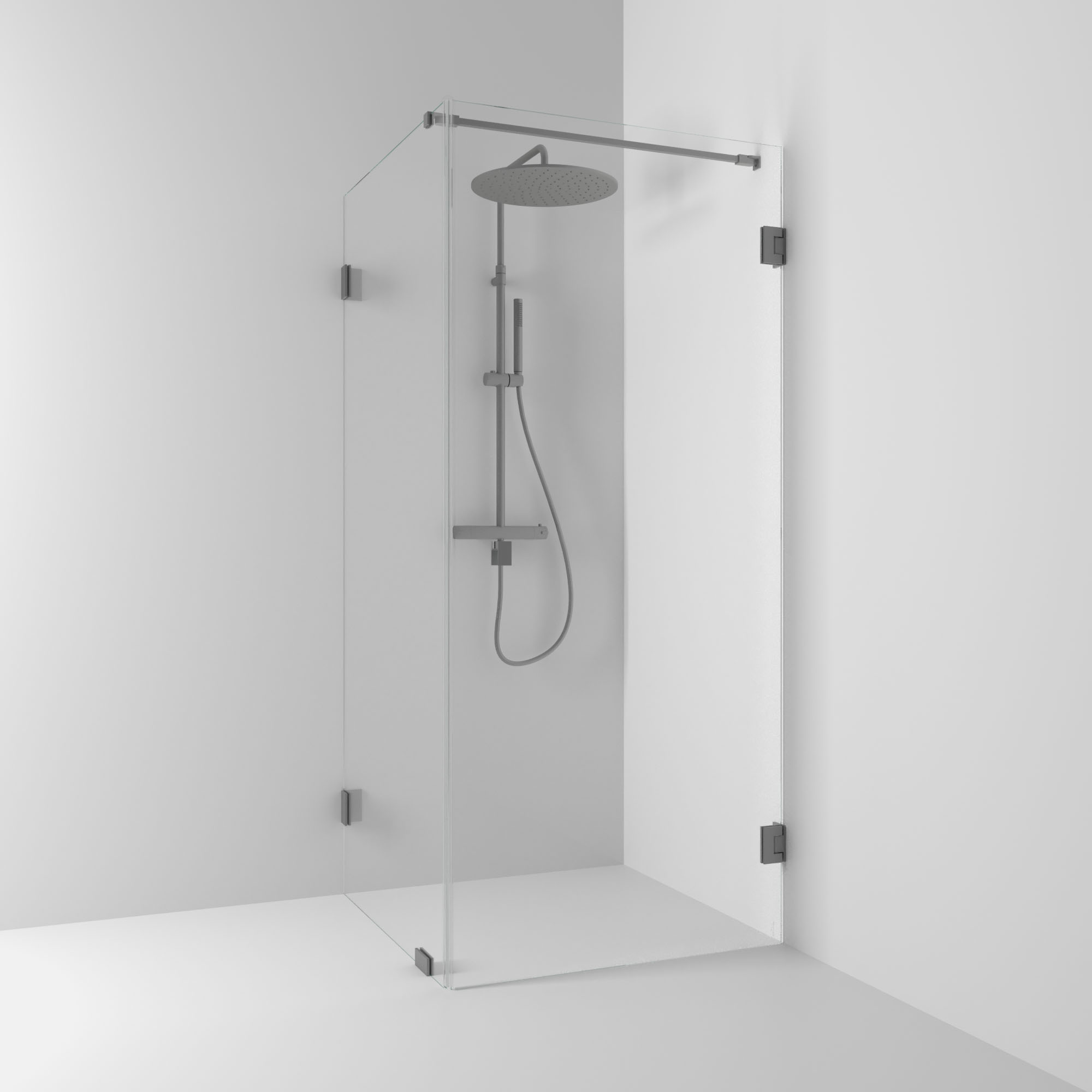 Hörn Kombi 180° Klarglas/Borstad Blyertssvart 80x90