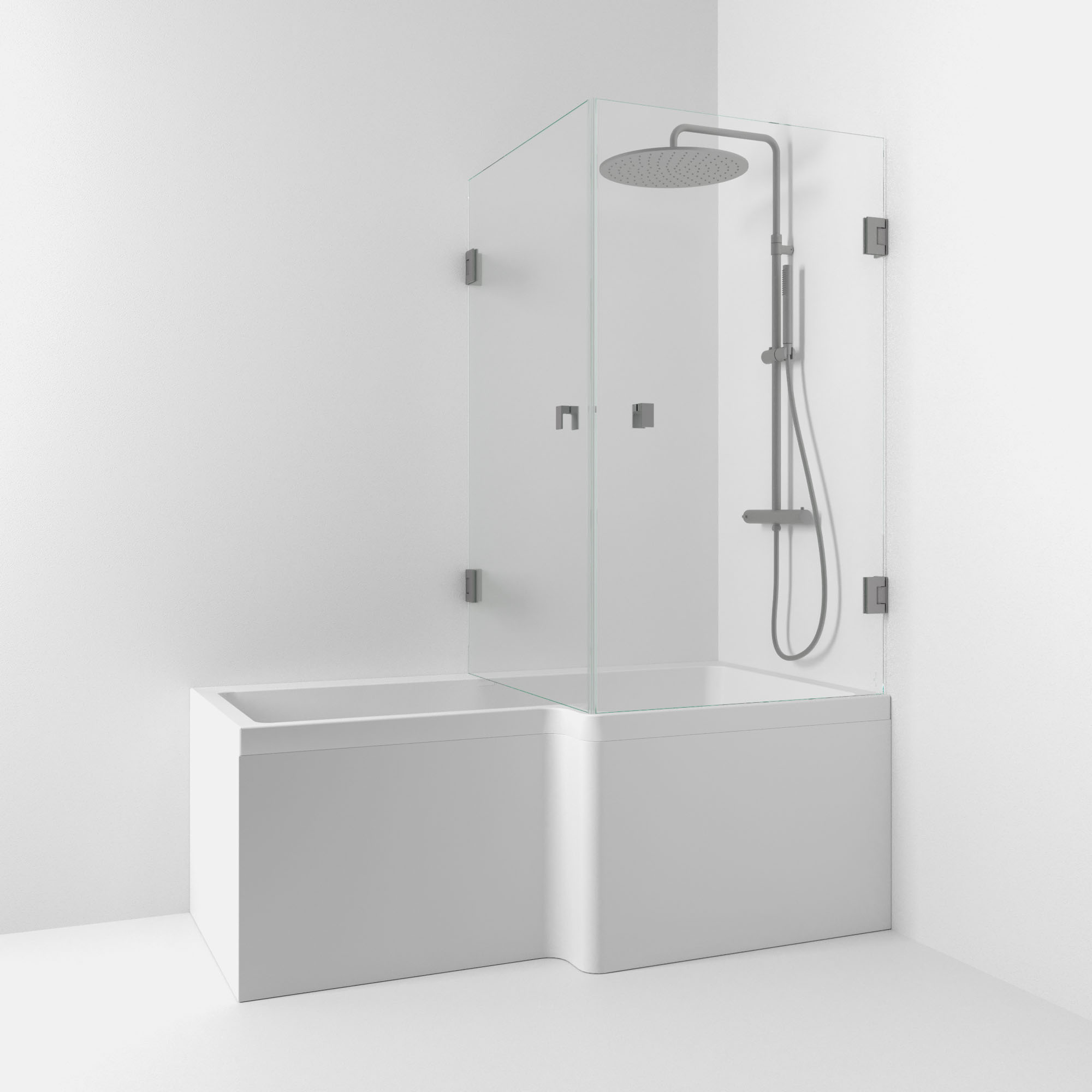Hörn Badkar 180° Klarglas/Borstad Blyertssvart 83x83