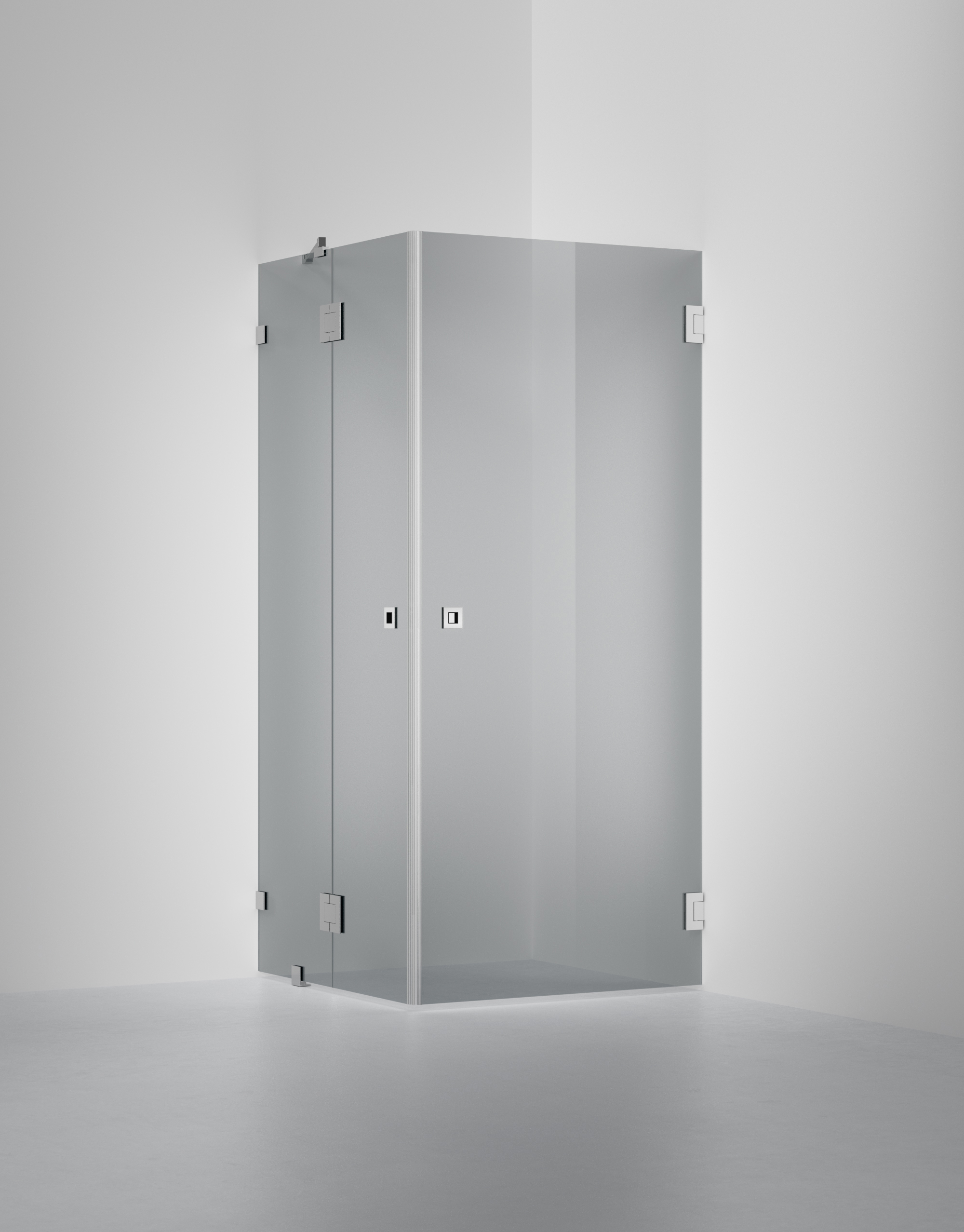 ARC 14 är en avskalad och vacker duschhörna i 8 mm säkerhetsglas och egendesignade beslag i krom med en liten fast vägg. Lösningen har inga bottenlister men levereras med transparenta magnetlister där dörrarna möts, för att skydda glaskanterna och för att sluta tätt.