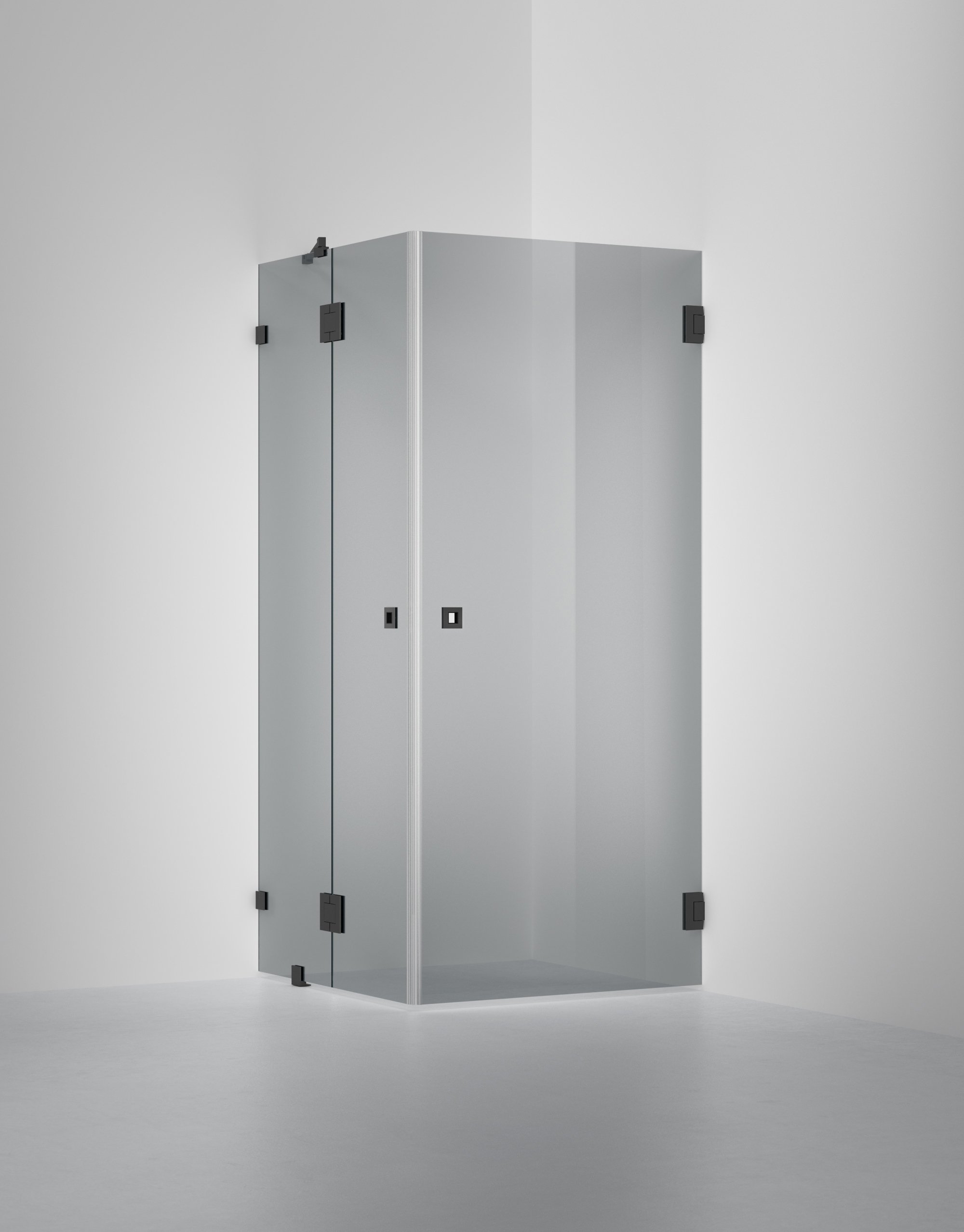 ARC 14 är en avskalad och vacker duschhörna i 8 mm säkerhetsglas och egendesignade beslag i krom med en liten fast vägg. Lösningen har inga bottenlister men levereras med transparenta magnetlister där dörrarna möts, för att skydda glaskanterna och för att sluta tätt.