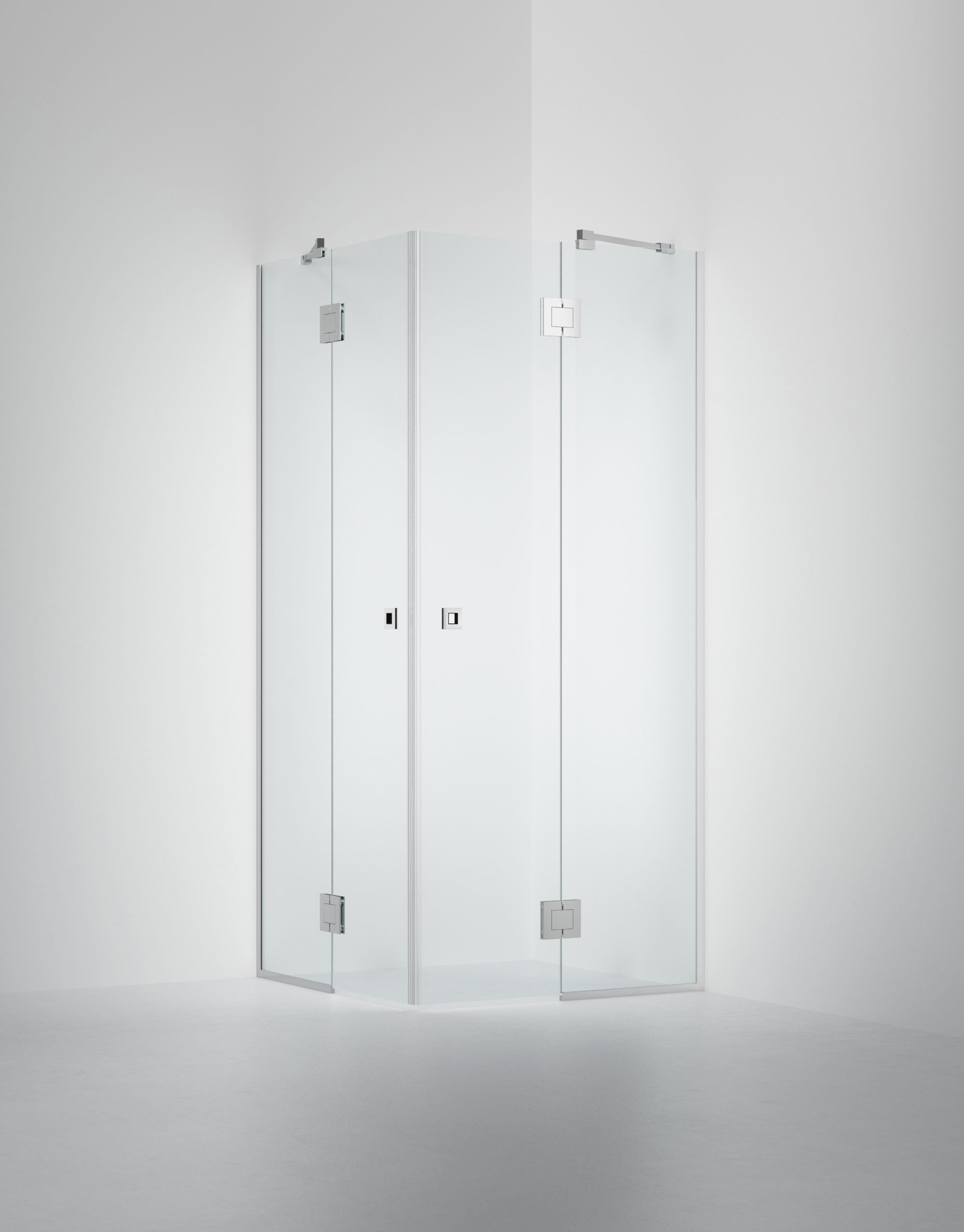 ARC 16 Frame är en duschhörna i 8 mm säkerhetsglas och egendesignade beslag i krom med två fasta väggar med skena. Lösningen har inga bottenlister men levereras med transparenta magnetlister där dörrarna möts, för att skydda glaskanterna och för att sluta tätt.