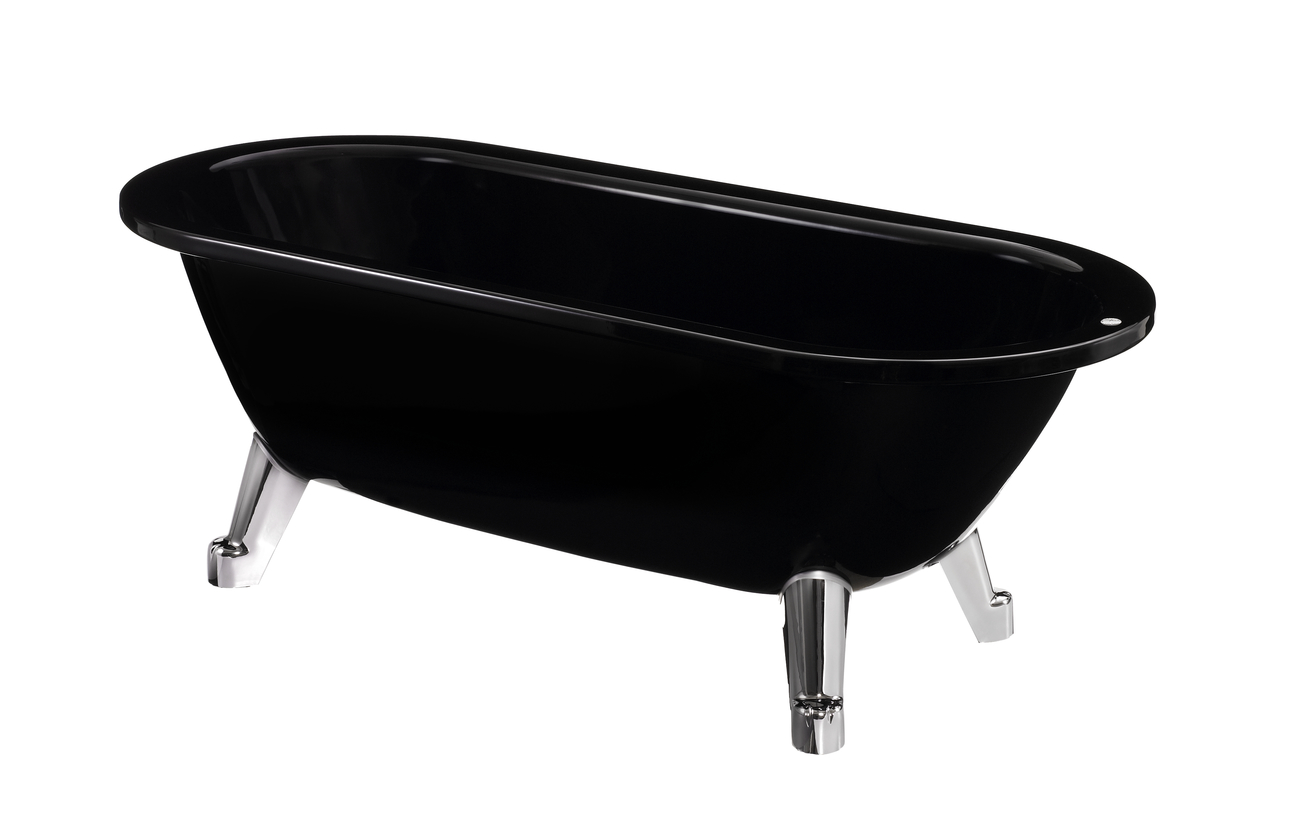 6316 Badkar i Sinful Black, utan fötter, med kromad bottenventil. Kompletteras med fötter i vitt, krom eller svartKomplettera med fötter i vitt, krom eller svart