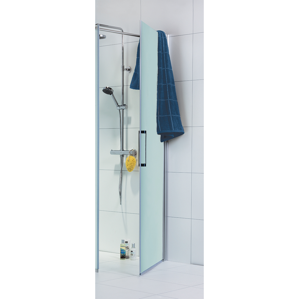 En flexibel och modern duschlösning bestående av en fast vägg tillsammans med en dörr, för montering i hörn. Duschlösningen ger dig stora variationsmöjligheter i dimensionerna. Du väljer själv vilken lösning som passar dig bäst, montering mot vägg eller tak. Duschen finns i klarglas, frostat glas samt Happy Going mönster.