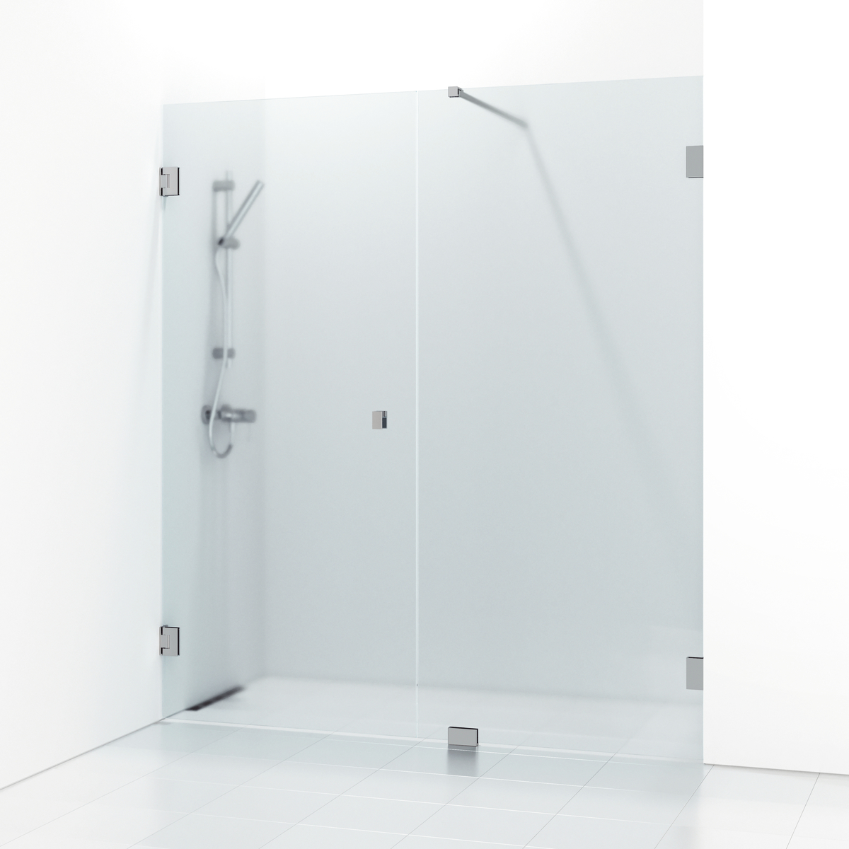 180° rak/fast nischdusch 200x100x200 krom kristall frostglas. Dubbel.