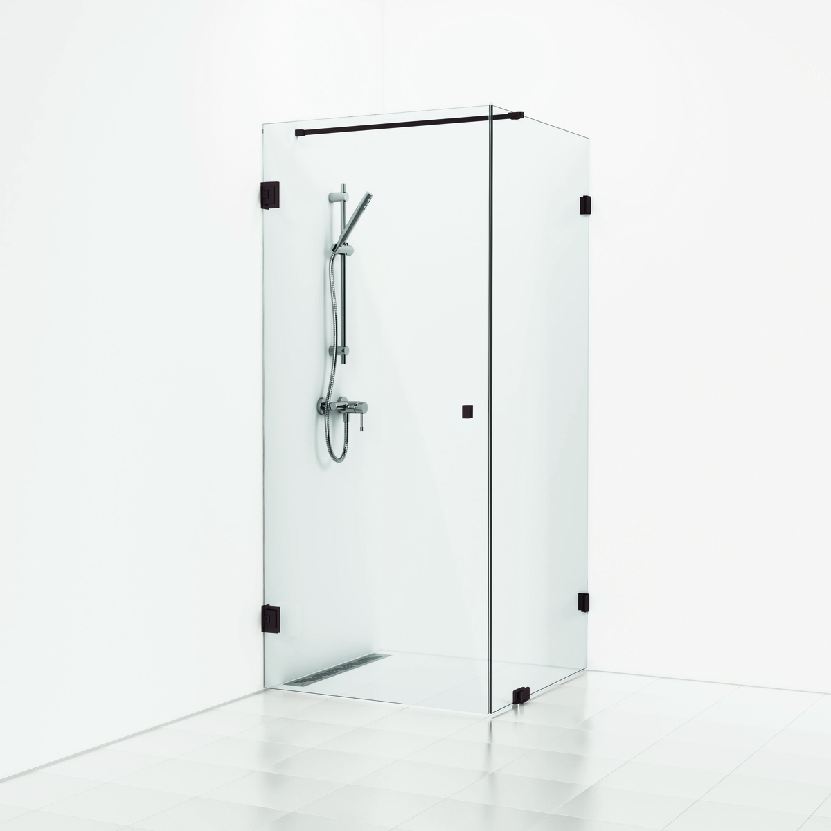 180° rak/fast hörndusch 80x80 svart matt profil och klarglas..